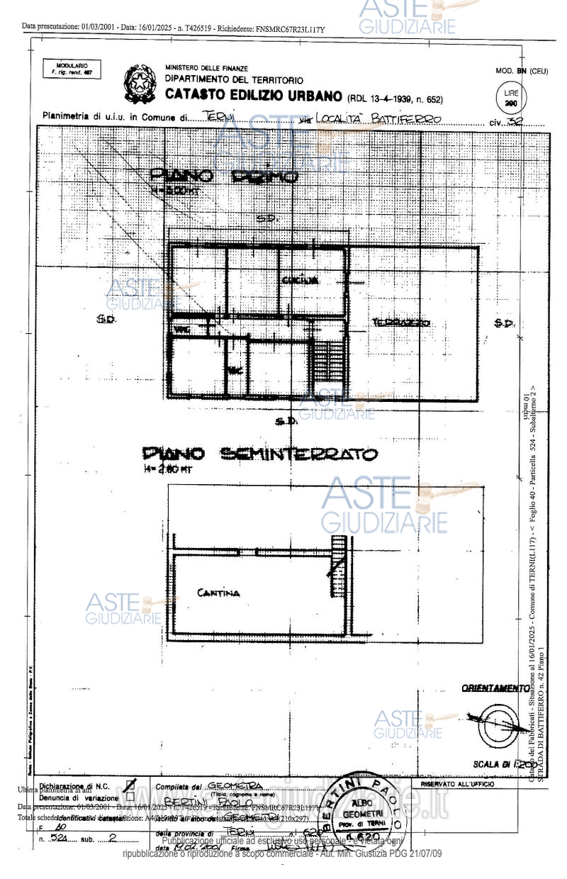 Vendita all'asta Senza incanto, con gara telematica asincrona - LOTTO 0: Piena proprietà appartamento della sup. catastale di mq 176 (totale escluse aree scoperte mq 159), primo piano di un edificio bifamiliare, con annessa cantina posta al piano S1 e un locale ad uso autorimessa pertinenziale posto al piano S1 (sup. cat. mq 33,00). Composto da disimpegno, 4 camere da letto, cucina/soggiorno, 2 bagni, balcone. Necessita di interventi di manutenzione ordinaria e straordinaria. Occupato dal debitore. Si rimanda alla perizia di stima per una puntuale descrizione dell’immobile. Prezzo base € 39.938,00 (offerta minima € 29.954,00). Data inizio operazioni di vendita: 02/07/2026 ore 09:30. Giudice Francesco Angelini. Professionista delegato alla vendita Avv. Federica Chiaranti - Email "federica.chiaranti@ordineavvocatiterni.it"; Tel. 0744420218. Custode Giudiziario Avv. Federica Chiaranti - Email "federica.chiaranti@ordineavvocatiterni.it"; Tel. 0744420218. Rif. Tribunale di Terni - Espropriazione immobiliare (cartabia) n. 55/2024