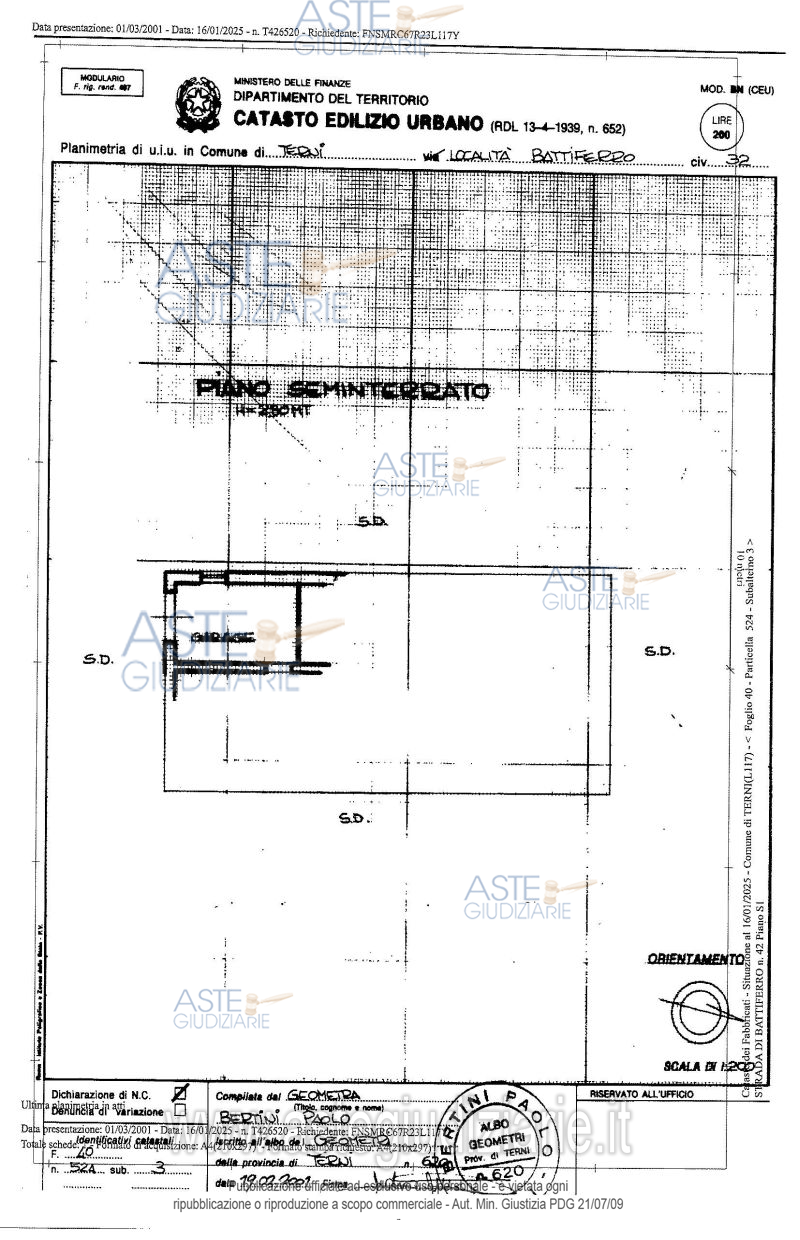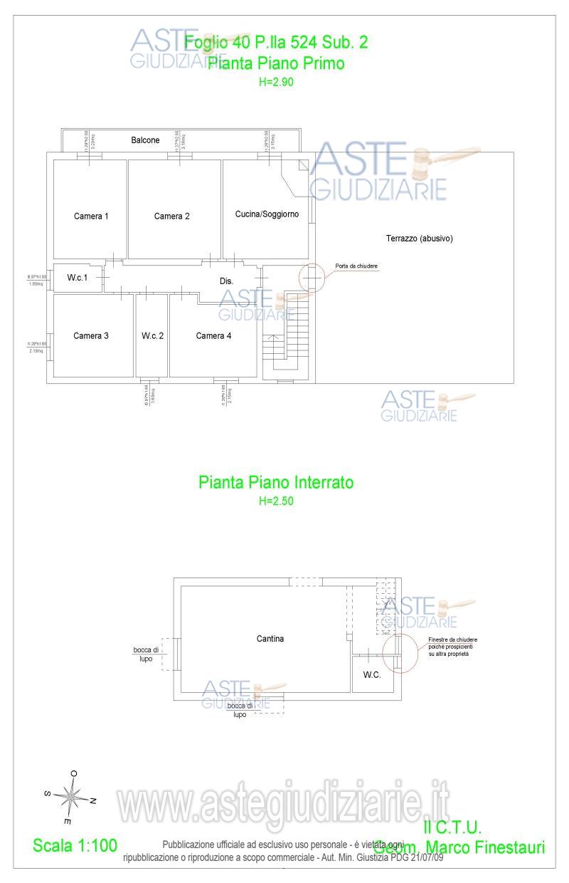 Vendita all'asta Senza incanto, con gara telematica asincrona - LOTTO UNICO:  Piena proprietà per la quota di 1/1 di appartamento ad uso civile abitazione posto al primo piano di un edificio bifamiliare, con annessa cantina posta al piano S1 e un locale ad uso autorimessa.