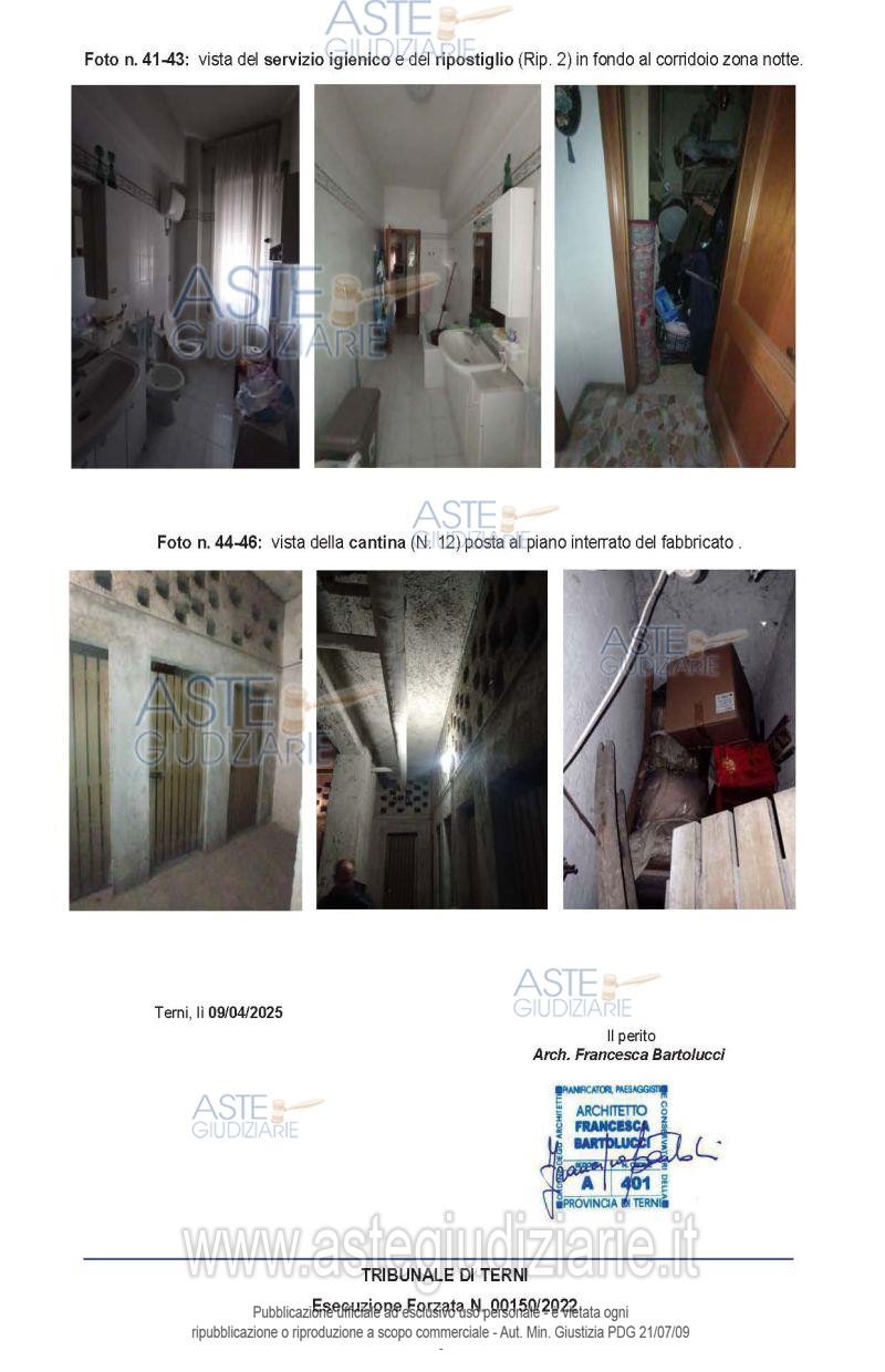 Vendita all'asta Senza incanto, con gara telematica asincrona - LOTTO 2: Appartamento di civile abitazione, con annessa cantina di 5,10 mq. Si compone di: ingresso, soggiorno con terrazza, cucina abitabile con una veranda chiusa con infissi, adibita a zona lavatoio ed occupata nella parte finale da un piccolo servizio igienico, due camere da letto, un disimpegno, due ripostigli e un ampio servizio igienico con finestra; superficie netta complessiva pari a circa 110,00 mq. il tutto meglio descritto nella perizia. Prezzo base € 51.564,38 (offerta minima € 38.674,00). Data inizio operazioni di vendita: 29/04/2026 ore 14:15. Giudice Dott. Francesco Angelini. Professionista delegato alla vendita Avv. Chiara Bassanelli - Email "avv.chiarabassanelli@gmail.com"; Tel. 3478120198. Custode Giudiziario Avv. Chiara Bassanelli - Email "avv.chiarabassanelli@gmail.com"; Tel. 3478120198. Rif. Tribunale di Terni - Esecuzione immobiliare post legge 80 n. 150/2022
