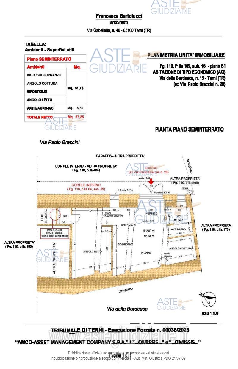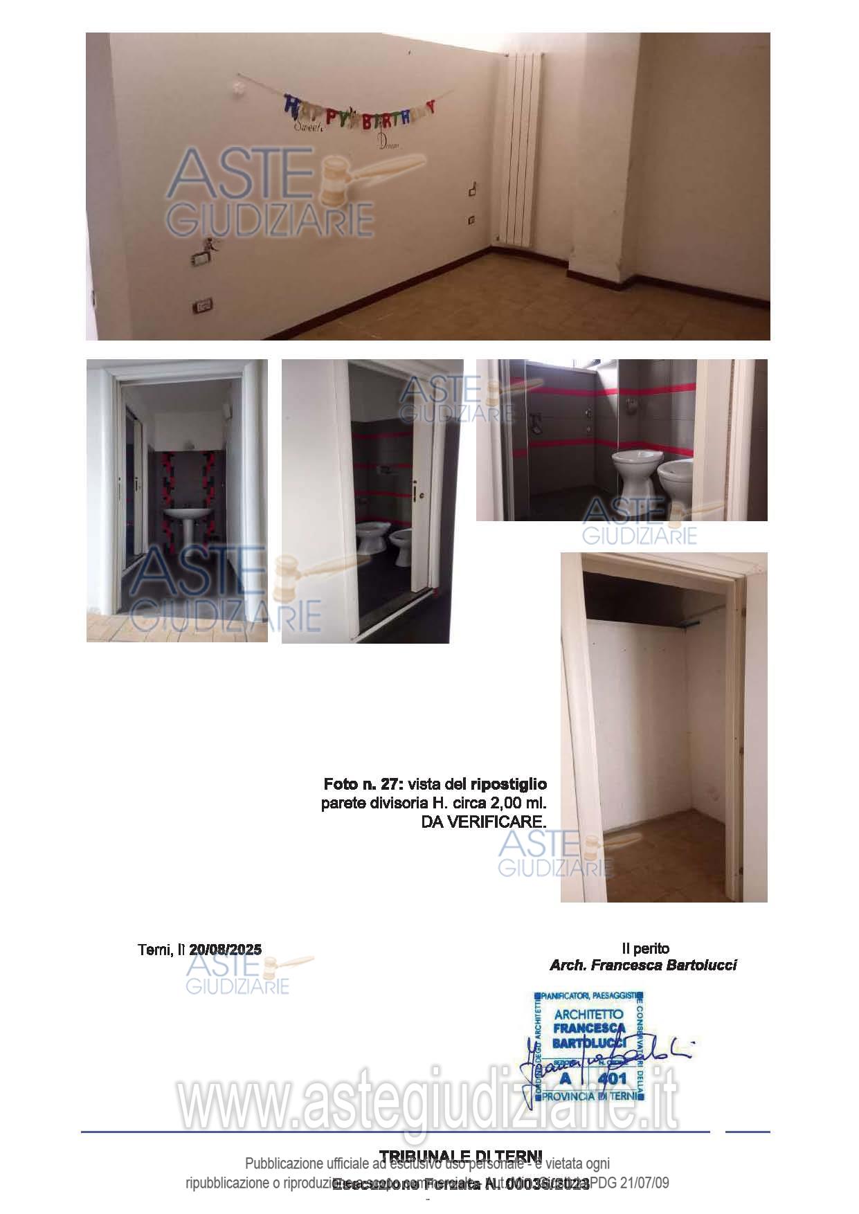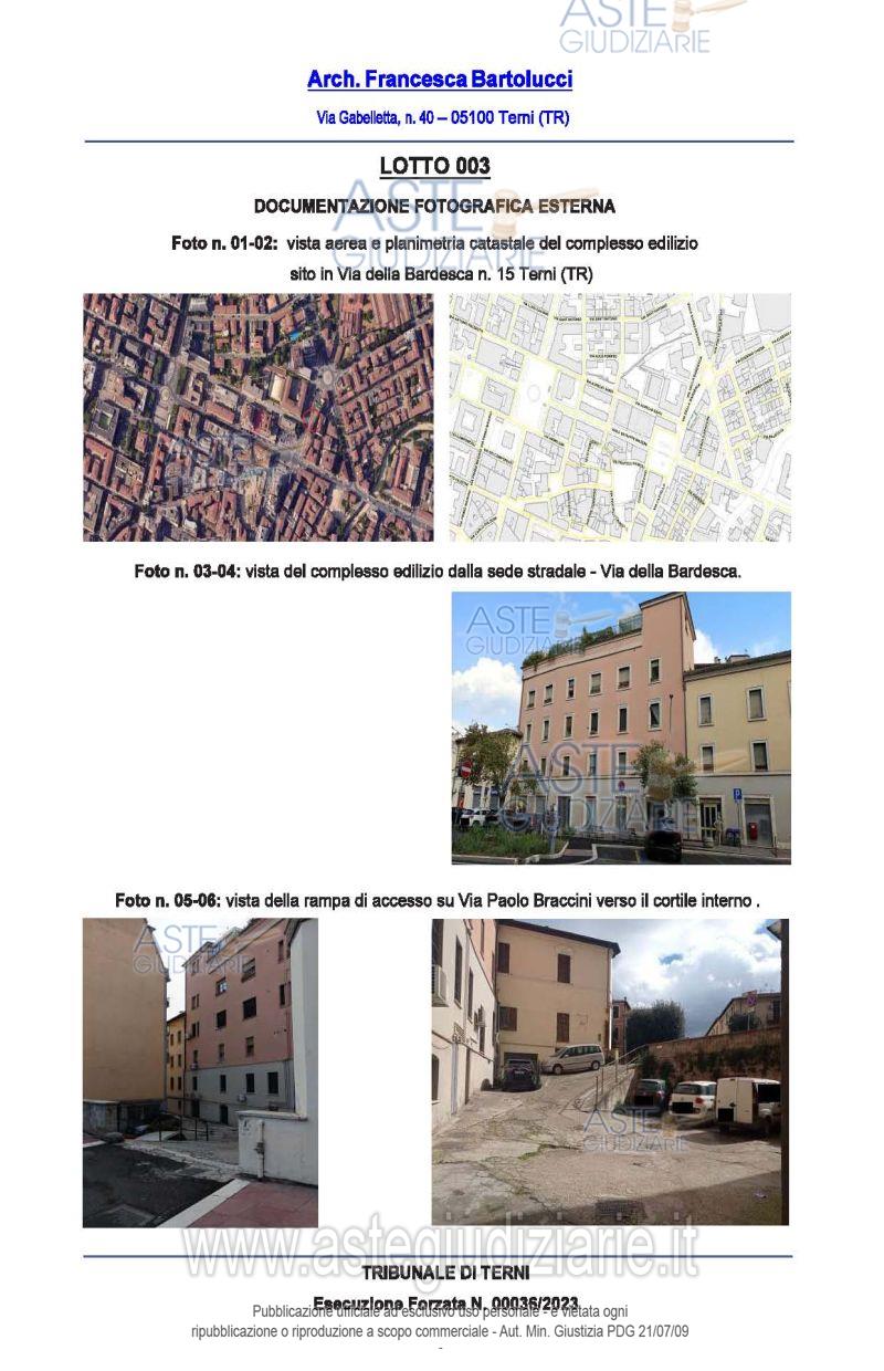 Vendita all'asta Senza incanto, con gara telematica asincrona - LOTTO 3: appartamento posto al piano seminterrato composto da: unico ambiente adibito a soggiorno/pranzo e angolo cottura, un angolo letto separato dalla zona giorno da una parete divisoria in cartongesso di altezza 2,00 metri, un piccolo ripostiglio e un servizio igienico dotato di antibagno, con finestra e piatto doccia; il tutto meglio descritto nella perizia di stima. Prezzo base € 30.900,00 (offerta minima € 23.175,00). Data inizio operazioni di vendita: 15/04/2026 ore 10:30. Giudice Tommaso Bellei. Professionista delegato alla vendita Avv. Chiara Bassanelli - Email "avv.chiarabassanelli@gmail.com"; Tel. 3478120198. Custode Giudiziario Avv. Chiara Bassanelli - Email "avv.chiarabassanelli@gmail.com"; Tel. 3478120198. Rif. Tribunale di Terni - Espropriazione immobiliare (cartabia) n. 36/2023