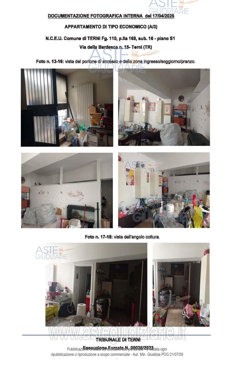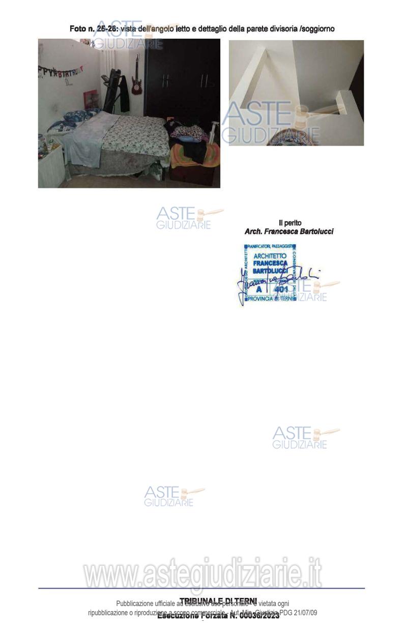 Vendita all'asta Senza incanto, con gara telematica asincrona - LOTTO 3: appartamento posto al piano seminterrato composto da: unico ambiente adibito a soggiorno/pranzo e angolo cottura, un angolo letto separato dalla zona giorno da una parete divisoria in cartongesso di altezza 2,00 metri, un piccolo ripostiglio e un servizio igienico dotato di antibagno, con finestra e piatto doccia; il tutto meglio descritto nella perizia di stima. Prezzo base € 41.200,00 (offerta minima € 30.900,00). Data inizio operazioni di vendita: 04/02/2026 ore 10:30. Giudice Tommaso Bellei. Professionista delegato alla vendita Avv. Chiara Bassanelli - Email "avv.chiarabassanelli@gmail.com"; Tel. 3478120198. Custode Giudiziario Avv. Chiara Bassanelli - Email "avv.chiarabassanelli@gmail.com"; Tel. 3478120198. Rif. Tribunale di Terni - Espropriazione immobiliare (cartabia) n. 36/2023