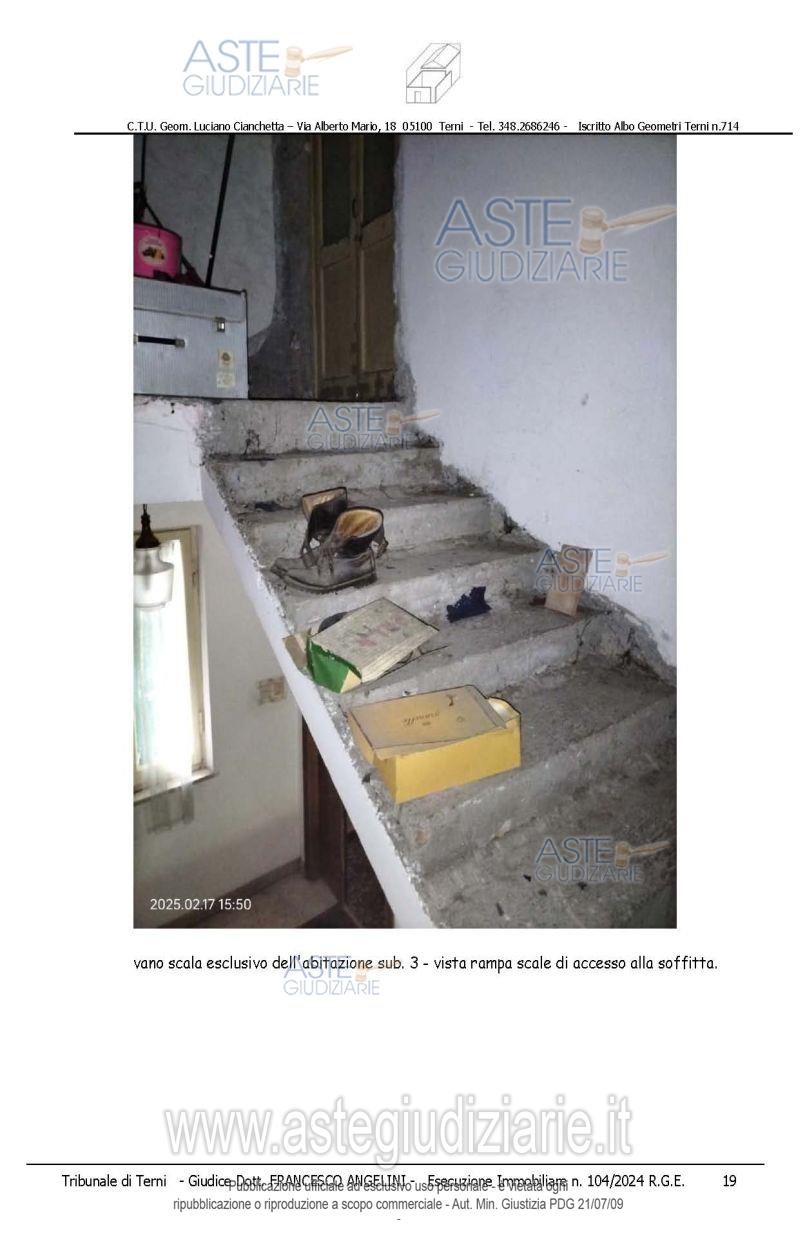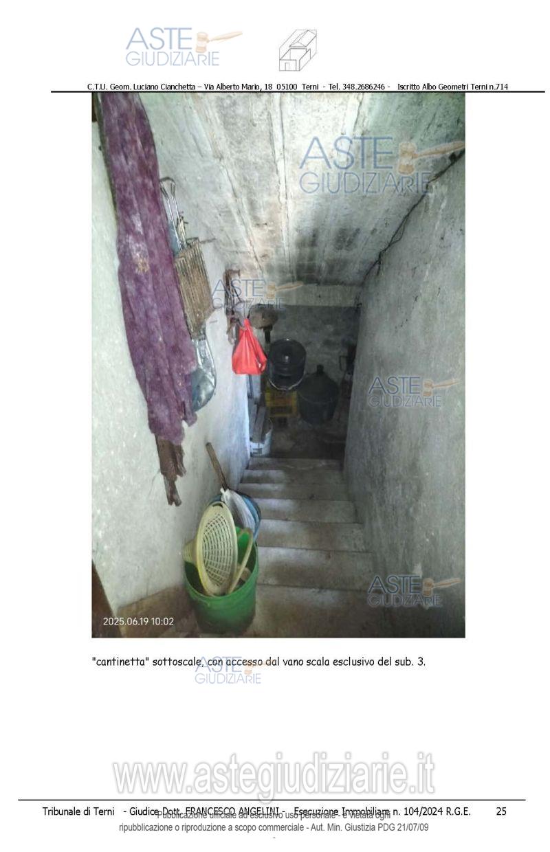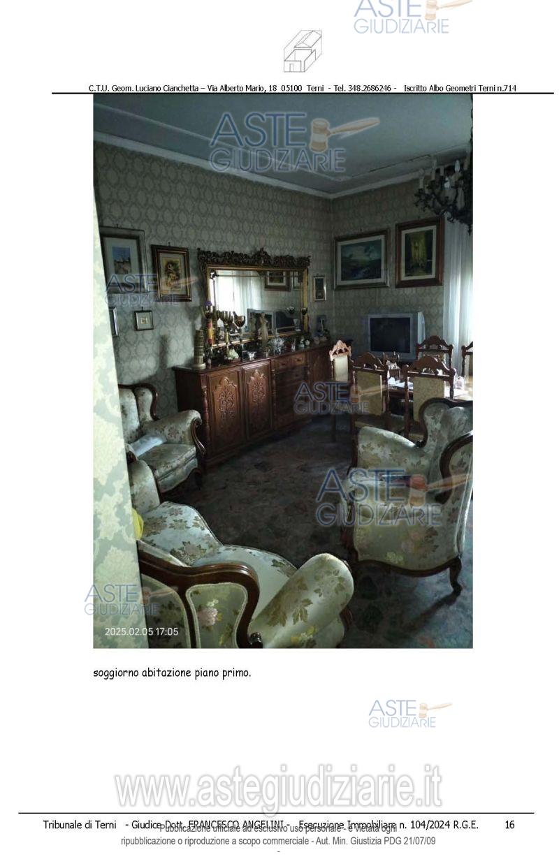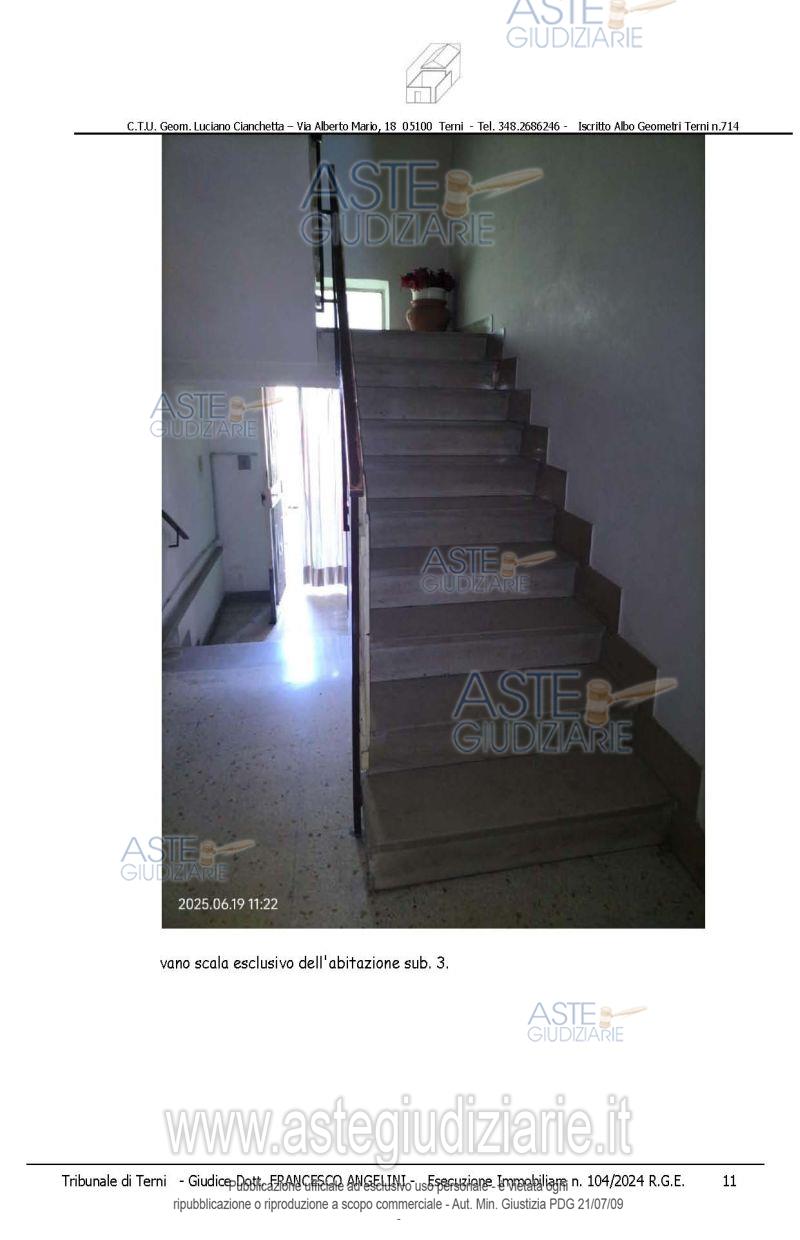 Vendita all'asta Senza incanto, con gara telematica asincrona - LOTTO 0: Piena proprietà per la quota di un primo di Appartamento di civile abitazione con corte annessa ed accessori piano T-1-2-S1; l’immobile è libero da persone ma occupato da beni mobili estranei alla procedura esecutiva, per i quali è già stato adottato apposito Ordine di liberazione. perla descrizione dettagliata si richiama integralmente e si rimanda in toto alla perizia di stima redatta dal CTU nominato. Prezzo base € 85.000,00 (offerta minima € 63.750,00). Data inizio operazioni di vendita: 05/02/2026 ore 11:30. Giudice Dott. Tommaso Bellei. Professionista delegato alla vendita Avv. Silvia Serni - Email "silviaserni@libero.it"; Tel. 0744403129. Custode Giudiziario Avv. Silvia Serni - Email "silviaserni@libero.it"; Tel. 0744403129. Rif. Tribunale di Terni - Espropriazione immobiliare (cartabia) n. 104/2024