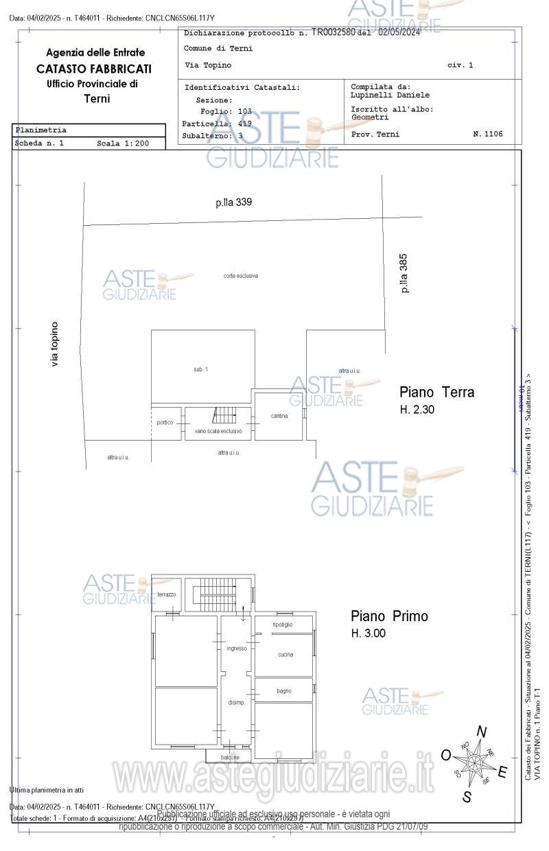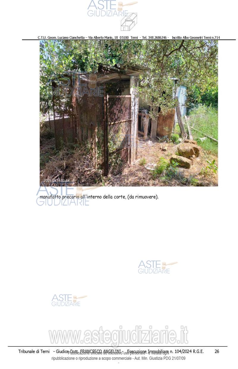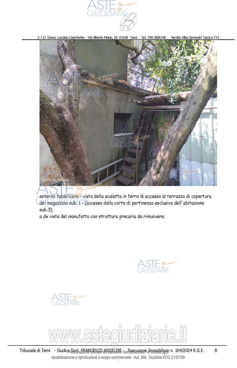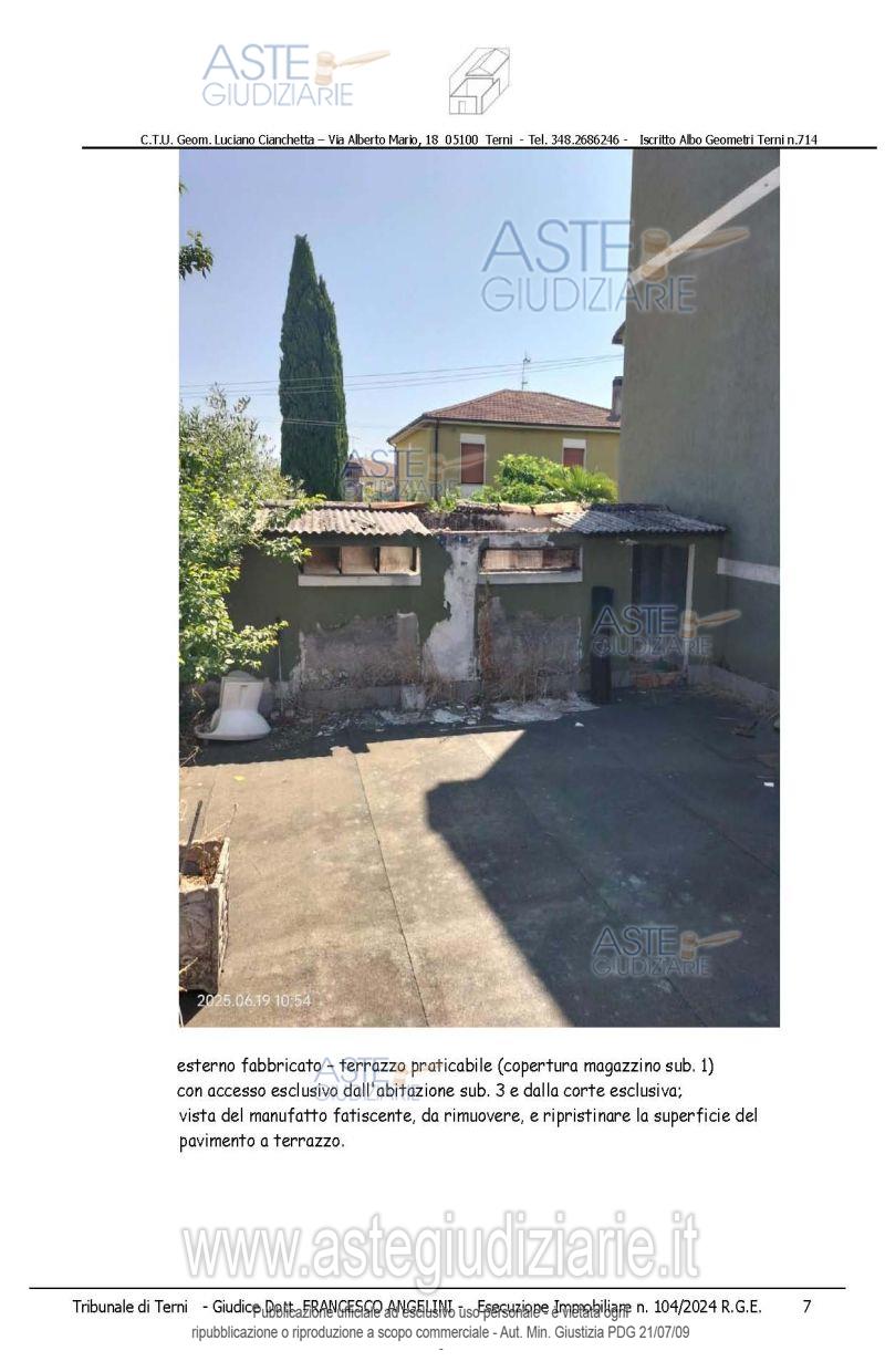 Vendita all'asta Senza incanto, con gara telematica asincrona - LOTTO 0: Piena proprietà per la quota di un primo di Appartamento di civile abitazione con corte annessa ed accessori piano T-1-2-S1; l’immobile è libero da persone ma occupato da beni mobili estranei alla procedura esecutiva, per i quali è già stato adottato apposito Ordine di liberazione. perla descrizione dettagliata si richiama integralmente e si rimanda in toto alla perizia di stima redatta dal CTU nominato. Prezzo base € 85.000,00 (offerta minima € 63.750,00). Data inizio operazioni di vendita: 05/02/2026 ore 11:30. Giudice Dott. Tommaso Bellei. Professionista delegato alla vendita Avv. Silvia Serni - Email "silviaserni@libero.it"; Tel. 0744403129. Custode Giudiziario Avv. Silvia Serni - Email "silviaserni@libero.it"; Tel. 0744403129. Rif. Tribunale di Terni - Espropriazione immobiliare (cartabia) n. 104/2024