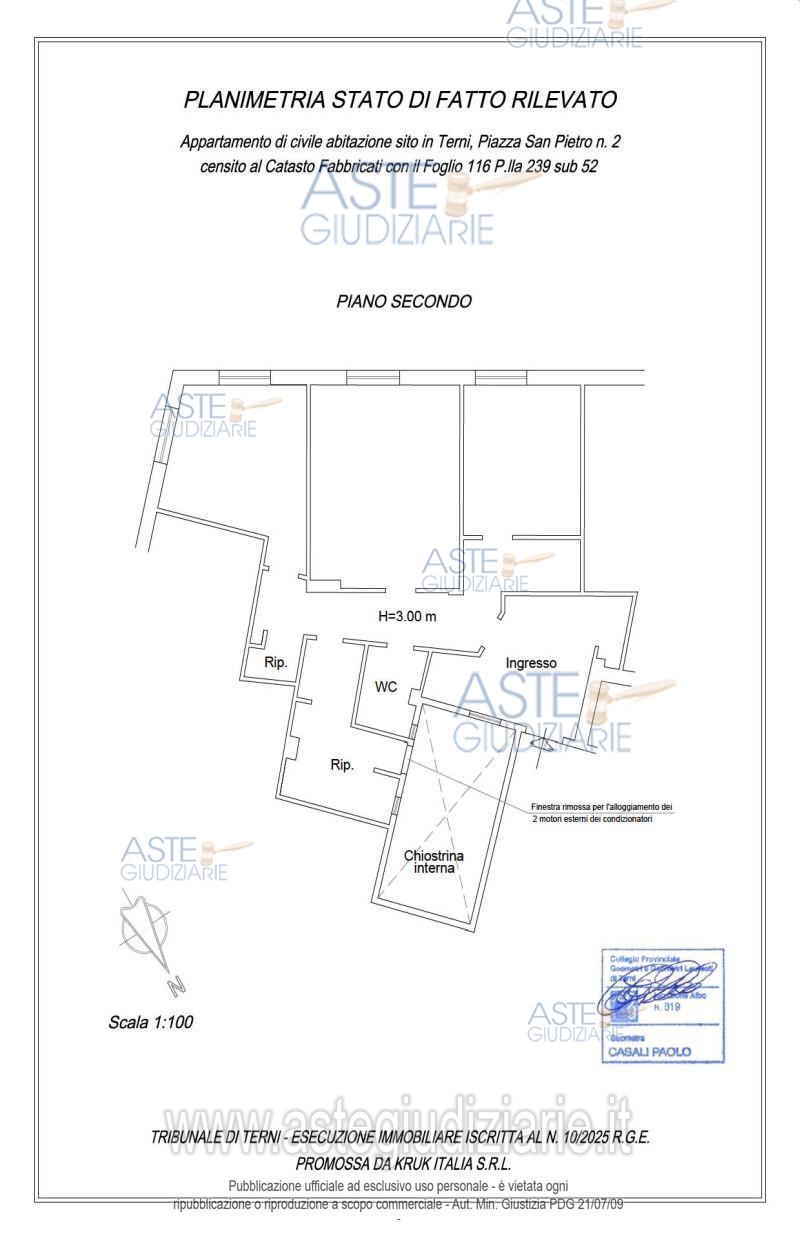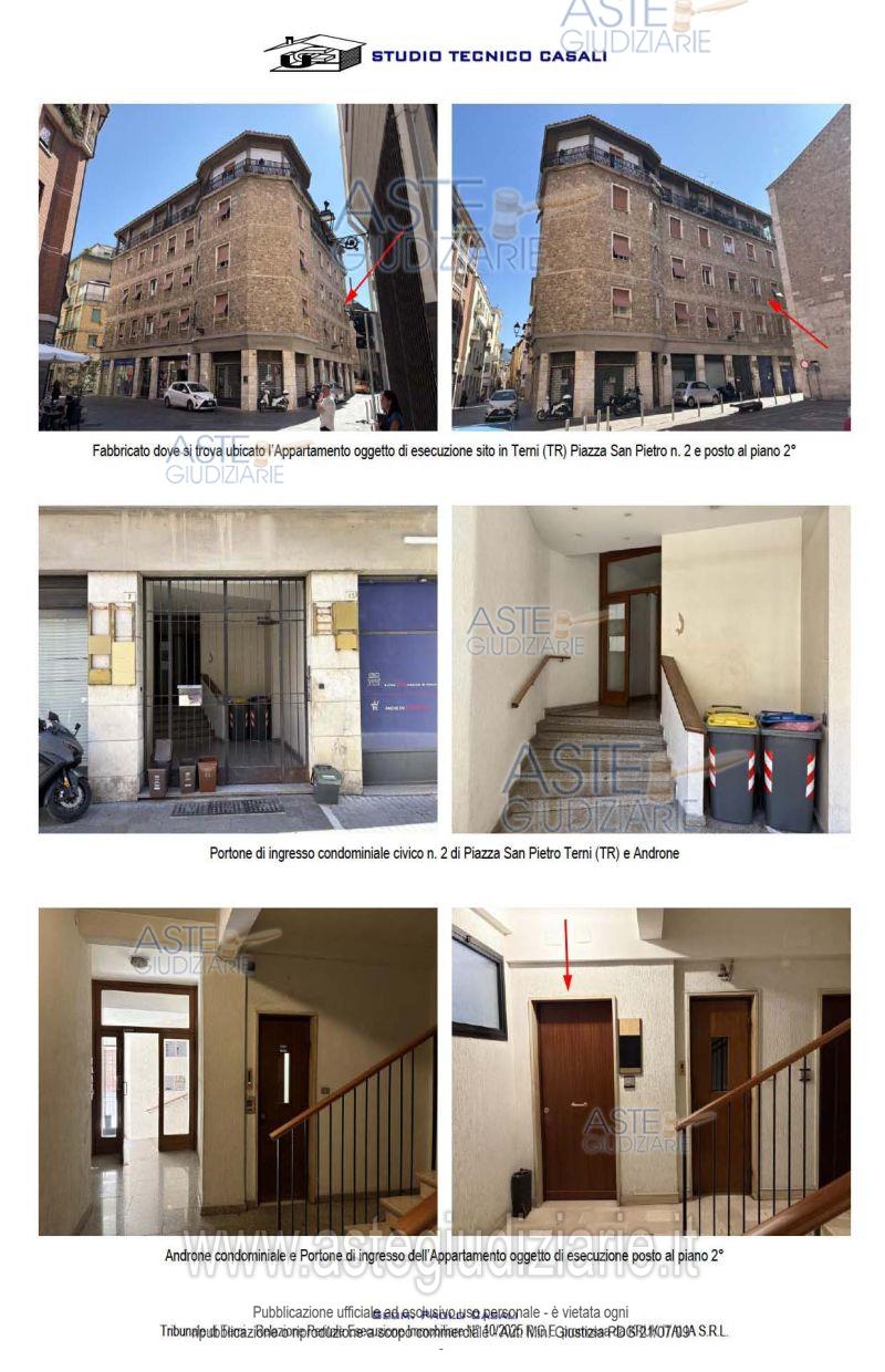 Vendita all'asta Senza incanto, con gara telematica asincrona - LOTTO UNICO: 1/1 di piena proprietà di appartamento di civile abitazione, sito in Terni, Piazza San Pietro n. 2, posto al piano secondo, composto da ampio vano ingresso, corridoio/disimpegno centrale, tre vani, un bagno, due ripostigli, di cui uno con finestra. Si rimanda alla perizia di stima per una puntuale descrizione dell’immobile, anche con riferimento alla presenza di eventuali difformità urbanistiche e catastali riscontrate, nonché alla modalità di determinazione del prezzo. Prezzo base € 68.000,00 (offerta minima € 51.000,00). Data inizio operazioni di vendita: 15/04/2026 ore 13:30. Giudice Francesco Angelini. Professionista delegato alla vendita Avv. Emiliano Strinati - Email "clericostrinati.studio@gmail.com"; Tel. 0744432001. Custode Giudiziario Avv. Emiliano Strinati - Email "clericostrinati.studio@gmail.com"; Tel. 0744432001. Rif. Tribunale di Terni - Espropriazione immobiliare (cartabia) n. 10/2025