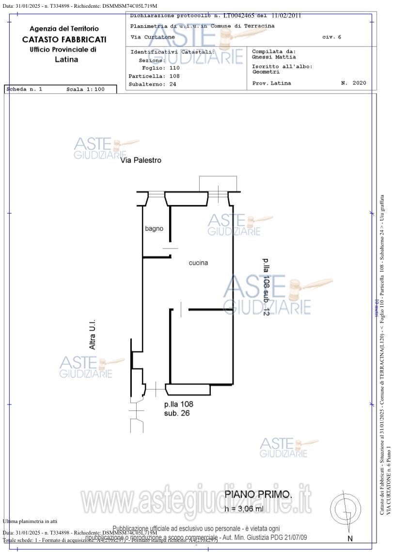 Vendita in attesa dell'emissione del nuovo bando d'asta. LOTTO UNICO: 1. Piena ed esclusiva proprietà su appartamento ubicato a Terracina (LT), via Curtatone n. 4, piano 1 senza ascensore della superficie utile residenziale di 44 mq circa e un balcone di 1,50 mq circa costituente un unico immobile di maggiore consistenza; 2.Piena ed esclusiva proprietà su appartamento ubicato a Terracina (LT), via Curtatone n. 4, piano 1. posto al piano primo senza ascensore della superficie utile residenziale di 9 mq circa costituente un unico immobile di maggiore consistenza. Ultimo prezzo base € 71.959,50 (offerta minima € 53.969,63). Professionista delegato alla vendita Avv. Ioselita Trotta - Email "ioselitatrotta@libero.it"; Cell. 3487238544; Tel. 0773400003. Custode Giudiziario Avv. Ioselita Trotta - Email "ioselitatrotta@libero.it"; Cell. 3487238544; Tel. 0773400003. Rif. Tribunale di Latina - Espropriazione immobiliare (cartabia) n. 282/2023
