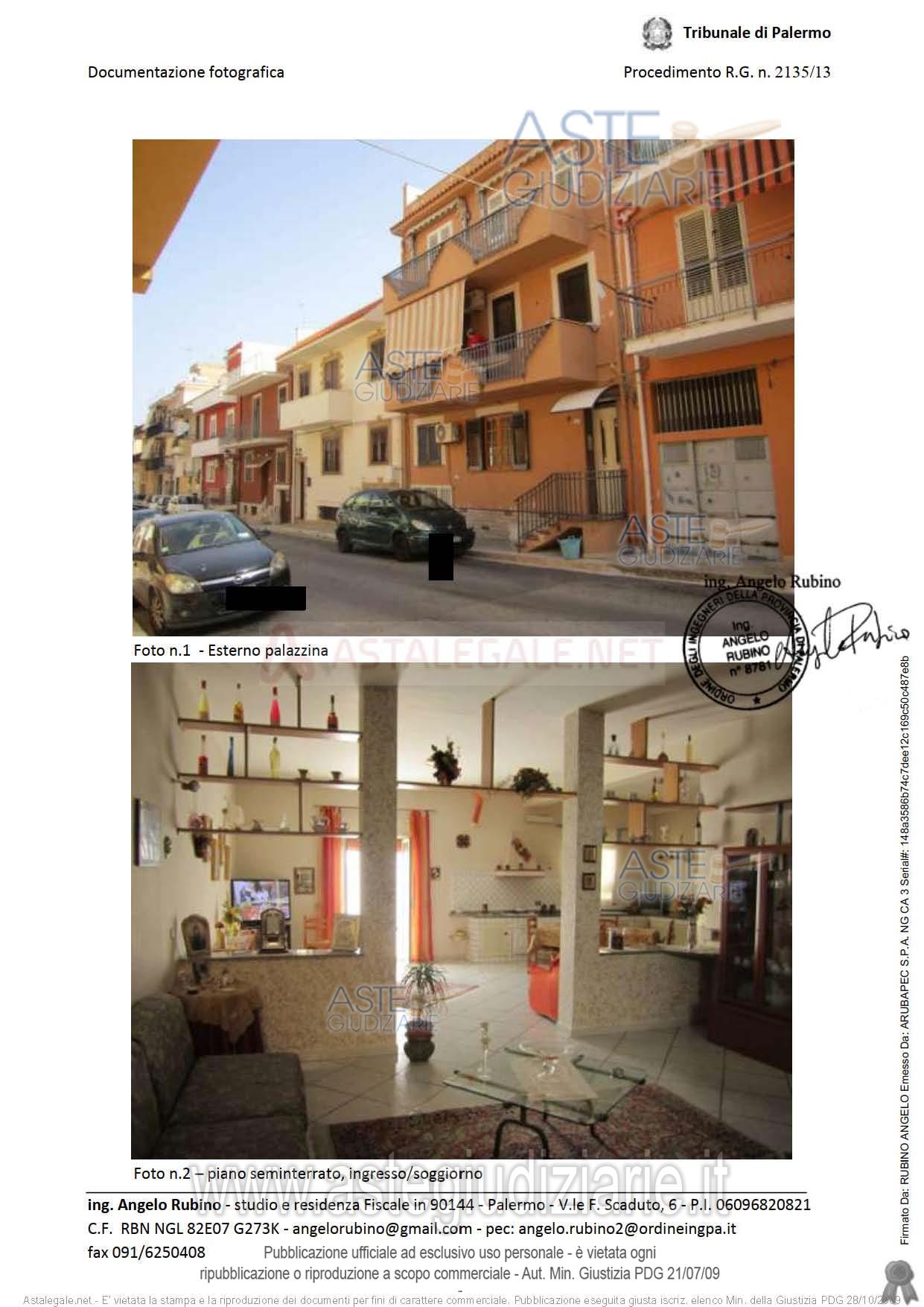 - particella 744, subalterno 5, via Gaetano Ventimiglia n. 201, piano 1, categoria A/2, classe 6, vani 5, R.C. Euro 387,34;