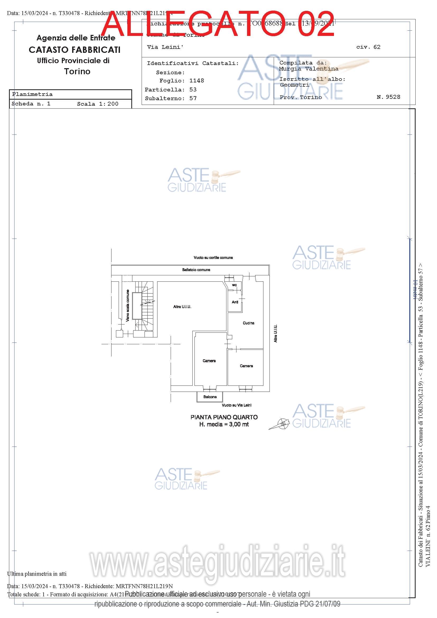 Vendita all'asta Senza incanto, con gara telematica asincrona - LOTTO UNICO: In Comune di TORINO (TO), unità immobiliare in Via Leinì civico numero 62, al piano quarto (5 f.t.): alloggio con ingresso dal ballatoio con affaccio su cortile condominiale, composto di due camere, soggiorno con angolo cottura e servizi, al piano sotterraneo: un locale ad uso cantina pertinenziale. Prezzo base € 17.000,00 (offerta minima € 12.750,00). Data inizio operazioni di vendita: 15/12/2025 ore 13:45. Professionista delegato alla vendita Avv. Claudia Femia - Email "claudia.femia@libero.it"; Tel. 0110413074. Custode Giudiziario Avv. Claudia Femia - Email "claudia.femia@libero.it"; Tel. 0110413074. Rif. Tribunale di Torino - Espropriazione immobiliare (cartabia) n. 418/2023