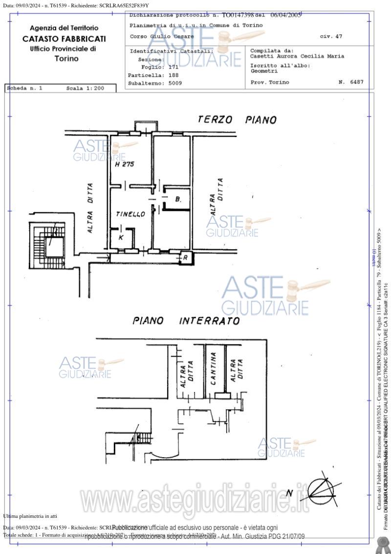 Vendita all'asta Senza incanto, con gara telematica asincrona - LOTTO UNICO: In Comune di TORINO, corso Giulio Cesare 47, piena proprietà di alloggio al piano terzo della superficie commerciale di 114 mq., con accesso da ballatoio comune, composto di ingresso, soggiorno, cucinino, disimpegno, tre camere e servizio igienico, ed annessa cantina al piano interrato. Prezzo base € 84.000,00 (offerta minima € 63.000,00). Data inizio operazioni di vendita: 20/01/2026 ore 17:15. Giudice Maria Vittoria Chiavazza. Professionista delegato alla vendita Dott. Marina Antonelli - Email "martaeantonelli@591bis.com"; Tel. 011745551. Custode Giudiziario Ivg - Email "richieste.visite@ivgpiemonte.it"; Tel. 011482822. Rif. Tribunale di Torino - Espropriazione immobiliare (cartabia) n. 791/2023