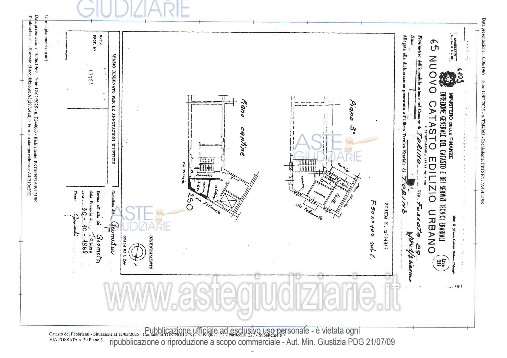 Vendita all'asta Senza incanto, con gara telematica asincrona - LOTTO UNICO:  -- al piano terzo (quarto f.t.) alloggio composto di due camere, tinello con cucinino e servizi, distinto con il numero 17 (diciassette) e colorato in verde nella pianta del relativo piano allegata al regolamento di condominio.-- al piano interrato: un locale ad uso cantina, distinto con il numero 2 (due) e colorato in giallo nella pianta del piano allegata al regolamento di condominio. Prezzo base € 40.000,00 (offerta minima € 30.000,00). Data inizio operazioni di vendita: 04/11/2025 ore 15:00. Giudice Nicoletta Aloj. Professionista delegato alla vendita Dott. Renato Remmert - Email "renato.remmert@studioperotti.it"; Tel. 011505990. Custode Giudiziario  Dott. Renato Remmert - Email "renato.remmert@studioperotti.it"; Tel. 011505990.  Rif. Tribunale di Torino - Espropriazione immobiliare (cartabia) n. 580/2024