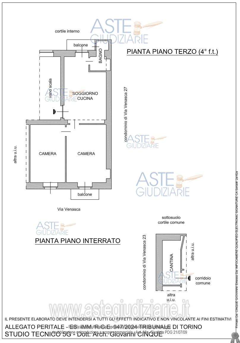 Vendita all'asta Senza incanto, con gara telematica asincrona - LOTTO UNICO: alloggio al piano terzo (quarto f.t.) composto di due camere, cucina e servizi, con cantina al piano sotterraneo. Prezzo base € 56.600,00 (offerta minima € 42.450,00). Data inizio operazioni di vendita: 11/11/2025 ore 12:00. Giudice Simona Gambacorta. Professionista delegato alla vendita Avv. Andrea Nardi - Email "avv.andreanardi@gmail.com"; Cell. 3899861477; Tel. 3899861477. Custode Giudiziario Avv. Andrea Nardi - Email "custodieimmobiliari@gmail.com"; Cell. 3899861477; Tel. 3899861477. Rif. Tribunale di Torino - Espropriazione immobiliare (cartabia) n. 947/2024