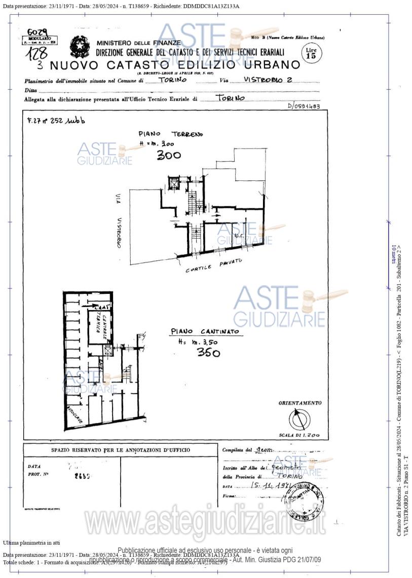 Vendita all'asta Senza incanto, con gara telematica asincrona - LOTTO UNICO: In Comune di TORINO, via Vistrorio 2, piena proprietà di alloggio al piano rialzato (superficie catastale 52 mq.), composto di ingresso, camera, cucina e bagno, ed annessa cantina al piano interrato. Prezzo base € 34.600,00 (offerta minima € 25.950,00). Data inizio operazioni di vendita: 18/11/2025 ore 15:00. Giudice Dott. Silvia Semini. Professionista delegato alla vendita Avv. Valentina Bari - Email "bari.lege@gmail.com"; Tel. 01119716947. Custode Giudiziario Avv. Valentina Bari - Email "valentinabariinfocustodia@591bis.com"; Cell. 3491021250. Rif. Tribunale di Torino - Espropriazione immobiliare (cartabia) n. 827/2023