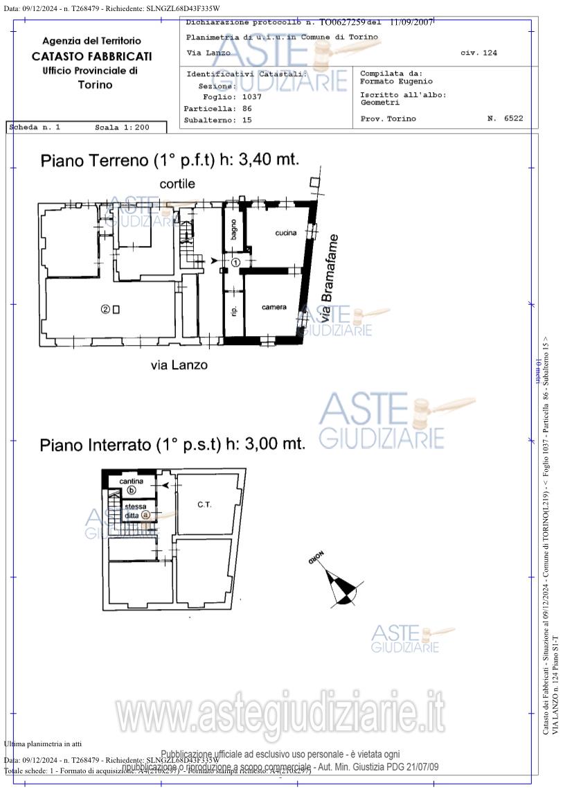 Vendita all'asta Senza incanto, con gara telematica asincrona - LOTTO 1: Alloggio al piano terra (1° f.t.) composto di ingresso, cucina, camera, ripostiglio, bagno ed al piano interrato cantina distinta con la lettera “b” nella planimetria del relativo piano allegata al Regolamento di Condominio. Prezzo base € 37.000,00 (offerta minima € 27.750,00). Data inizio operazioni di vendita: 25/11/2025 ore 09:30. Giudice Francesca Alonzo. Professionista delegato alla vendita Avv. Maria Cristina Albano. Custode Giudiziario Avv. Maria Cristina Albano - Email "avv.mcristinaalbano@libero.it"; Cell. 3473676090. Rif. Tribunale di Torino - Espropriazione immobiliare (cartabia) n. 730/2024