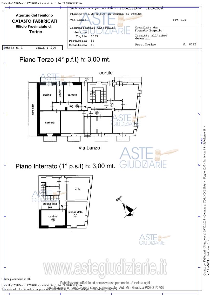 Vendita all'asta Senza incanto, con gara telematica asincrona - LOTTO 3: Alloggio al piano terzo (4° f.t.) composto di ingresso, cucina, due camere, bagno ed al piano interrato cantina, distinta con la lettera “d” nella planimetria del relativo piano allegata al Regolamento di condominio. Prezzo base € 50.000,00 (offerta minima € 37.500,00). Data inizio operazioni di vendita: 25/11/2025 ore 09:30. Giudice Francesca Alonzo. Professionista delegato alla vendita Avv. Maria Cristina Albano. Custode Giudiziario Avv. Maria Cristina Albano - Email "avv.mcristinaalbano@libero.it"; Cell. 3473676090. Rif. Tribunale di Torino - Espropriazione immobiliare (cartabia) n. 730/2024