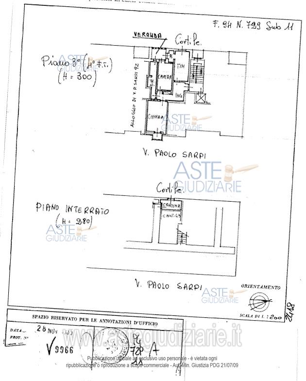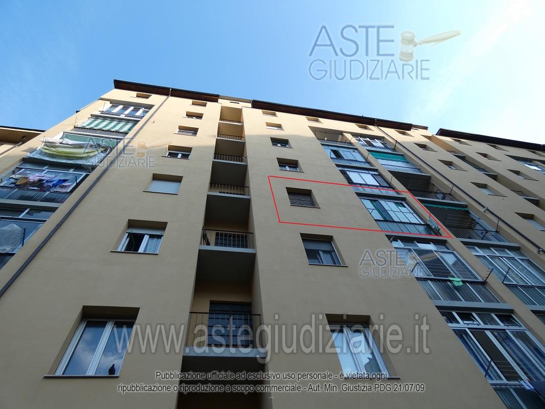 - alloggio al piano terzo (4° f.t.) composto di ingresso, due camere, bagno, tinello con cucinino, armadio a muro, due balconi di cui uno verandato; alle coerenze: a est aria su via Sarpi, a nord vano scala condominiale e altra unità immobiliare, a ovest aria su corte condominiale e a sud altra unità immobiliare con ingresso da Via Sarpi n. 92.