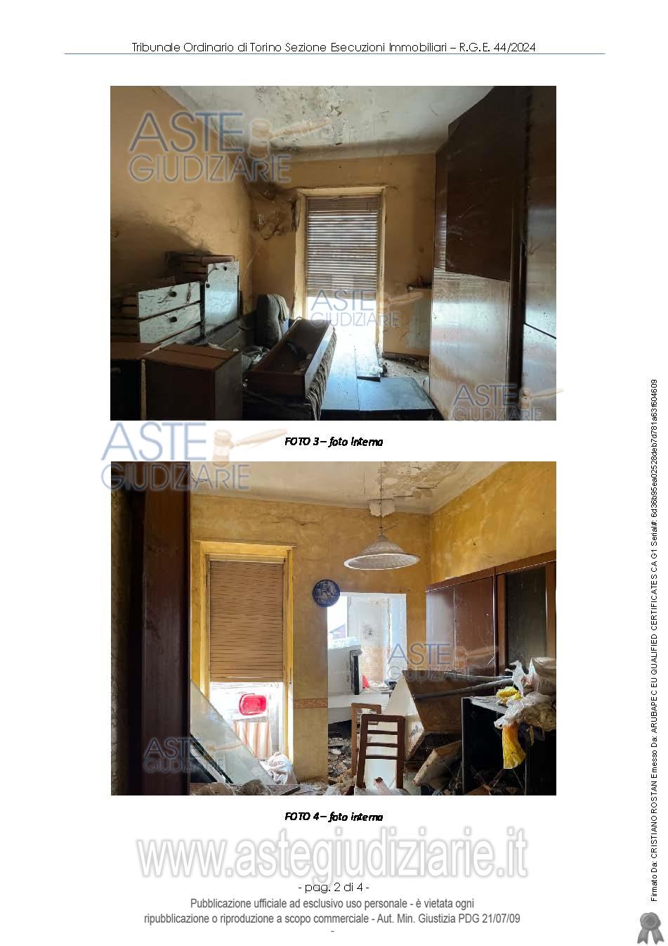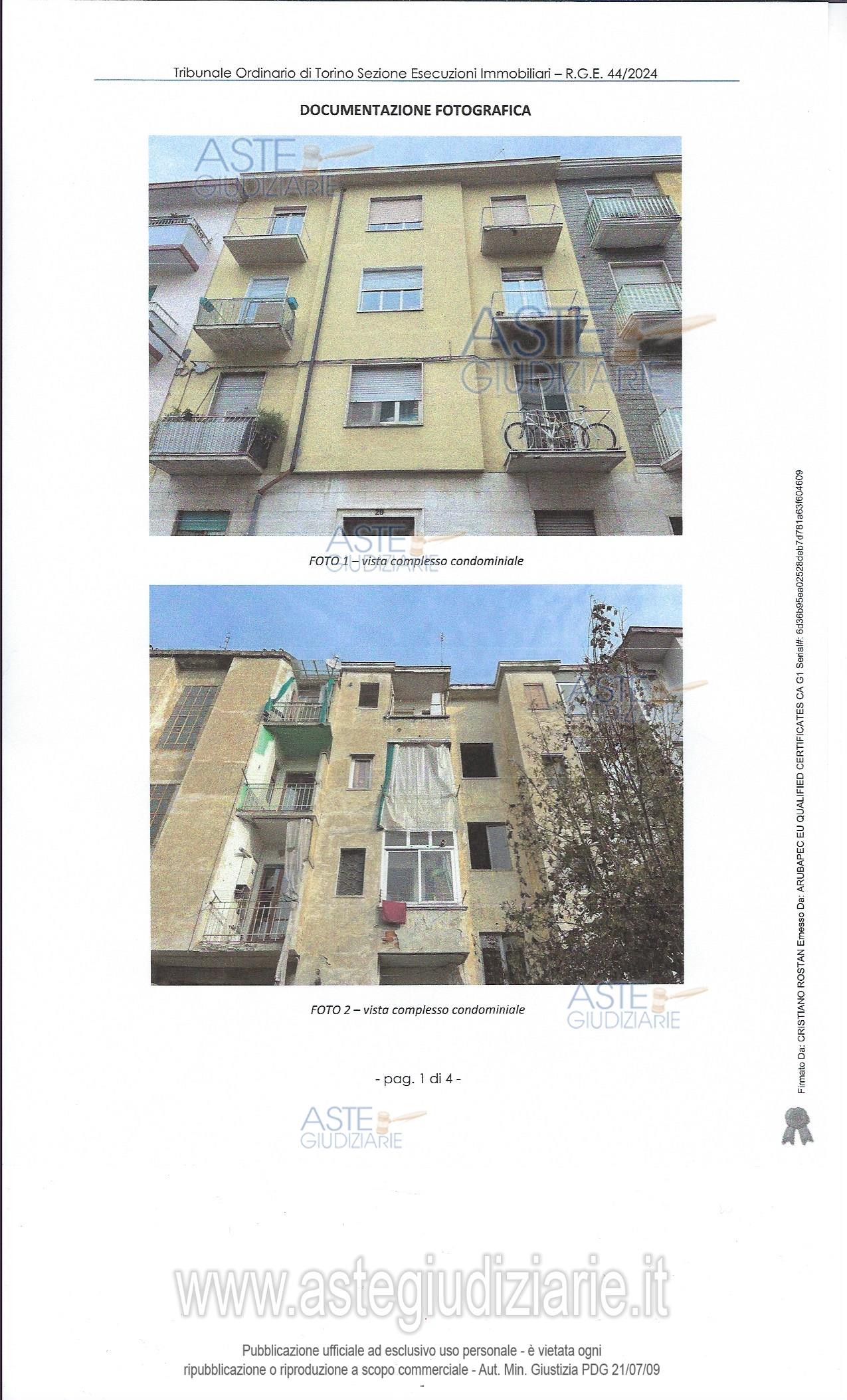 Vendita all'asta Senza incanto, con gara telematica asincrona - LOTTO UNICO: alloggio al piano terzo (4° f.t.), composto di soggiorno con cucinino, ripostiglio, una camera da letto, servizio igienico e due balconi, ed annessa cantina, al piano interrato. Prezzo base € 21.000,00 (offerta minima € 15.750,00). Data inizio operazioni di vendita: 16/12/2025 ore 10:30. Giudice Nicoletta Aloj. Professionista delegato alla vendita Avv. Angela Cimino - Email "angelamonica.cimino@tiscali.it"; Tel. 0113049629. Custode Giudiziario Avv. Angela Cimino - Email "angelamonica.cimino@tiscali.it"; Tel. 0113049629. Rif. Tribunale di Torino - Espropriazione immobiliare (cartabia) n. 44/2024