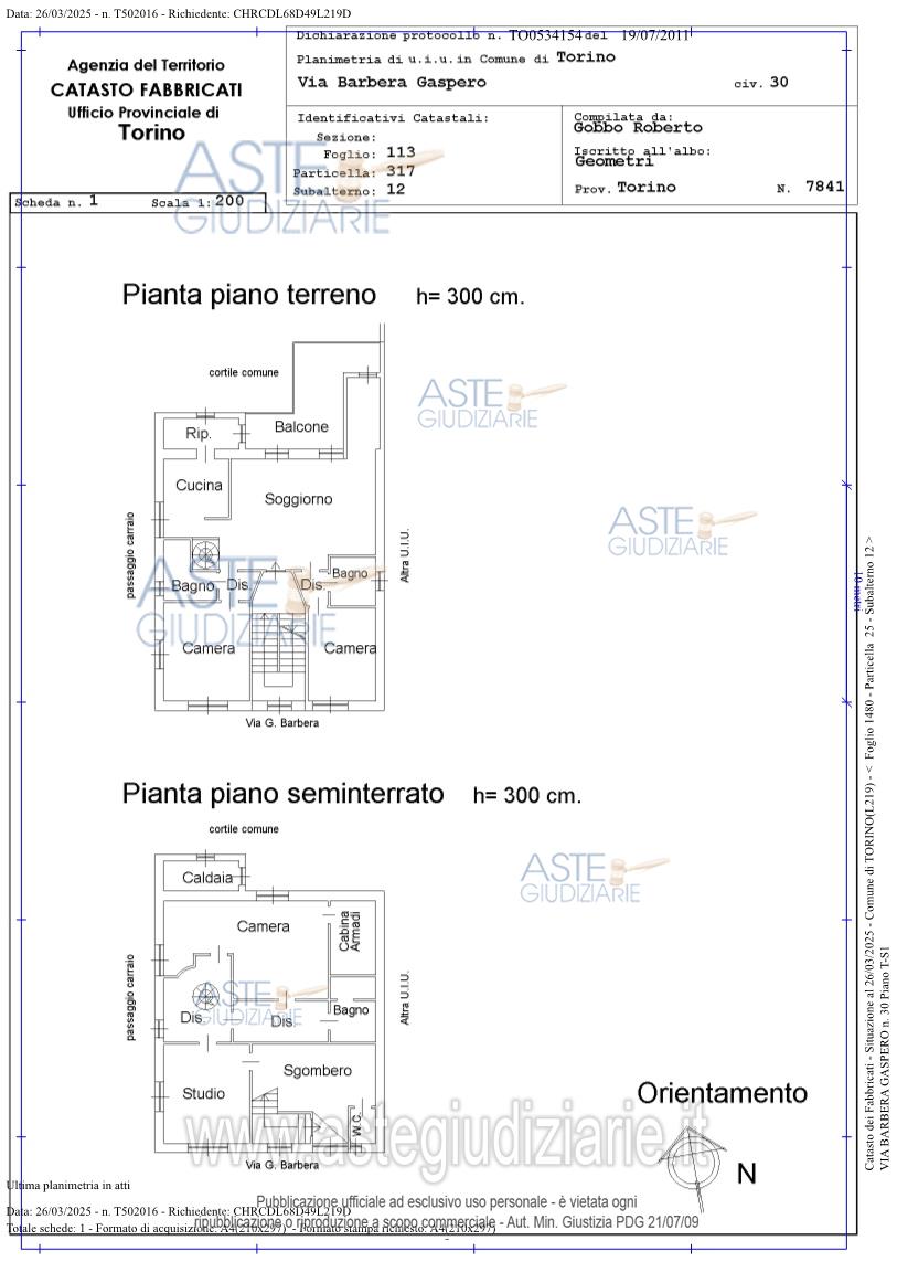 Vendita all'asta Senza incanto, con gara telematica asincrona - LOTTO 1: in Comune di Torino via Gaspero Barbera numero civico 30, nella casa di civile abitazione elevata a 4 piani fuori terra oltre seminterrato e sottotetto non abitabile:appartamento di civile abitazi. Prezzo base € 142.000,00 (offerta minima € 106.500,00). Data inizio operazioni di vendita: 09/02/2026 ore 16:30. Giudice Francesca Alonzo. Professionista delegato alla vendita Avv. Giuseppe Pensi. Custode Giudiziario Avv. Pensi - Email "giuseppe.pensi@inwind.it". Rif. Tribunale di Torino - Espropriazione immobiliare (cartabia) n. 858/2024