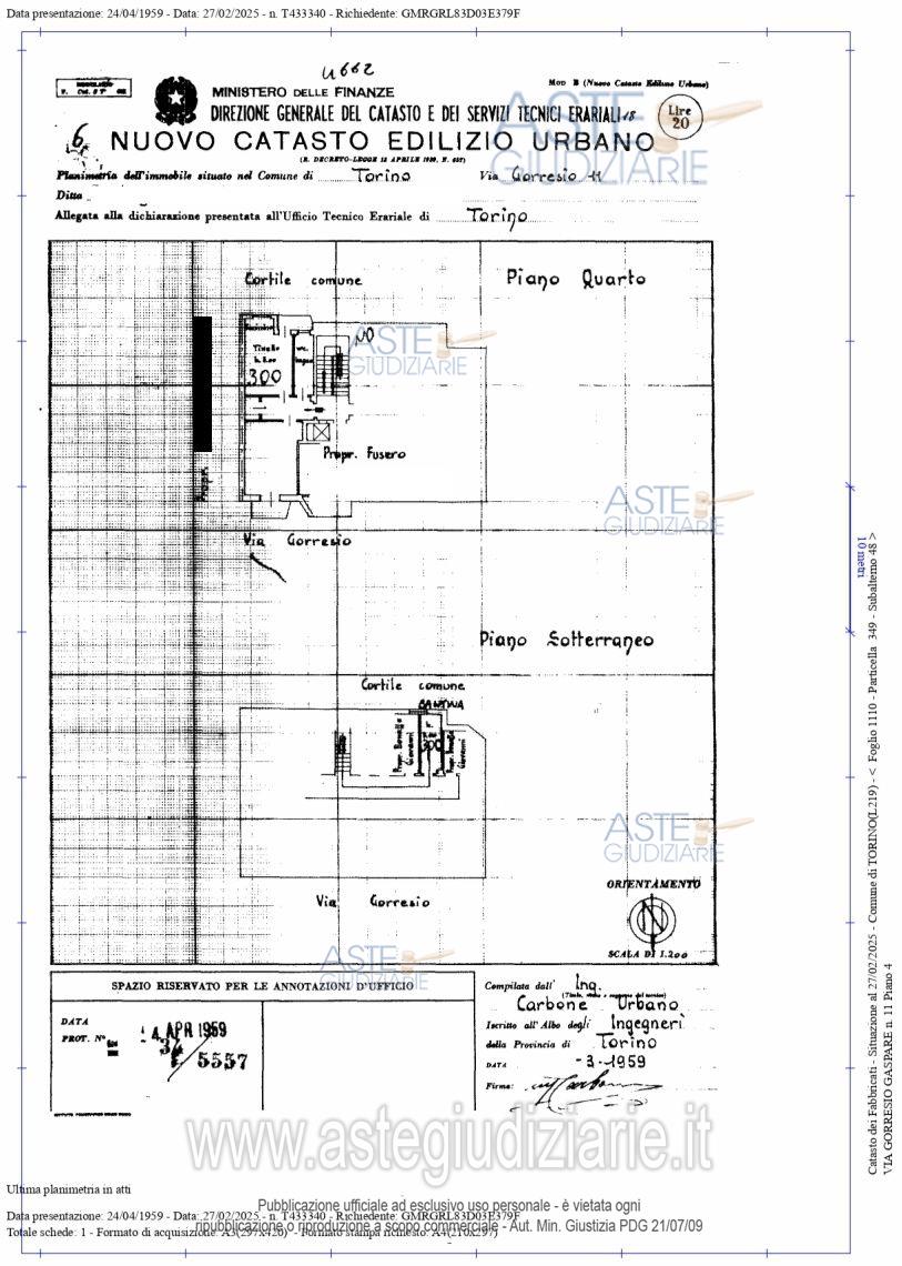 Vendita all'asta Senza incanto, con gara telematica asincrona - LOTTO UNICO: AVVISO VENDITA SENZA INCANTO CON ASTA TELEMATICA ASINCRONA - Appartamento al piano quarto (5° fuori terra) composto da ingresso, tinello con cucinino, ripostiglio, bagno, camera e due balconi, oltre a cantina al piano sotterraneo. Prezzo base € 52.400,00 (offerta minima € 39.300,00). Data inizio operazioni di vendita: 10/03/2026 ore 15:00. Giudice Dott. Simona Gambacorta. Professionista delegato alla vendita Avv. Angela Cardello - Email "angela.cardello@gmail.com"; Tel. 0121377493. Custode Giudiziario Avv. Angela Cardello - Email "angela.cardello@gmail.com"; Tel. 0121377493. Rif. Tribunale di Torino - Espropriazione immobiliare (cartabia) n. 700/2023