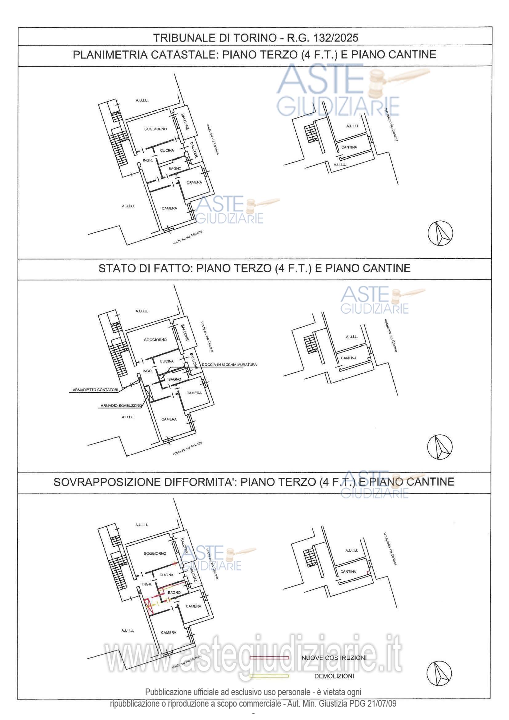 Vendita all'asta Senza incanto, con gara telematica asincrona - LOTTO 1: un appartamento al terzo piano (4° ft) della superficie commerciale di 98,88 mq, costituito da: ingresso, cucina, soggiorno, due camere, servizio igienico, sgabuzzino e balconi, e, al piano interrato una cantina. Prezzo base € 165.400,00 (offerta minima € 124.050,00). Data inizio operazioni di vendita: 16/06/2026 ore 10:30. Giudice Marta Barsotti. Professionista delegato alla vendita Avv. Pietro Pisano. Custode Giudiziario Ifir Ivg Piemonte Srl - Email "richieste.visite@ivgpiemonte.it"; Tel. 011482822. Rif. Tribunale di Torino - Espropriazione immobiliare (cartabia) n. 132/2025