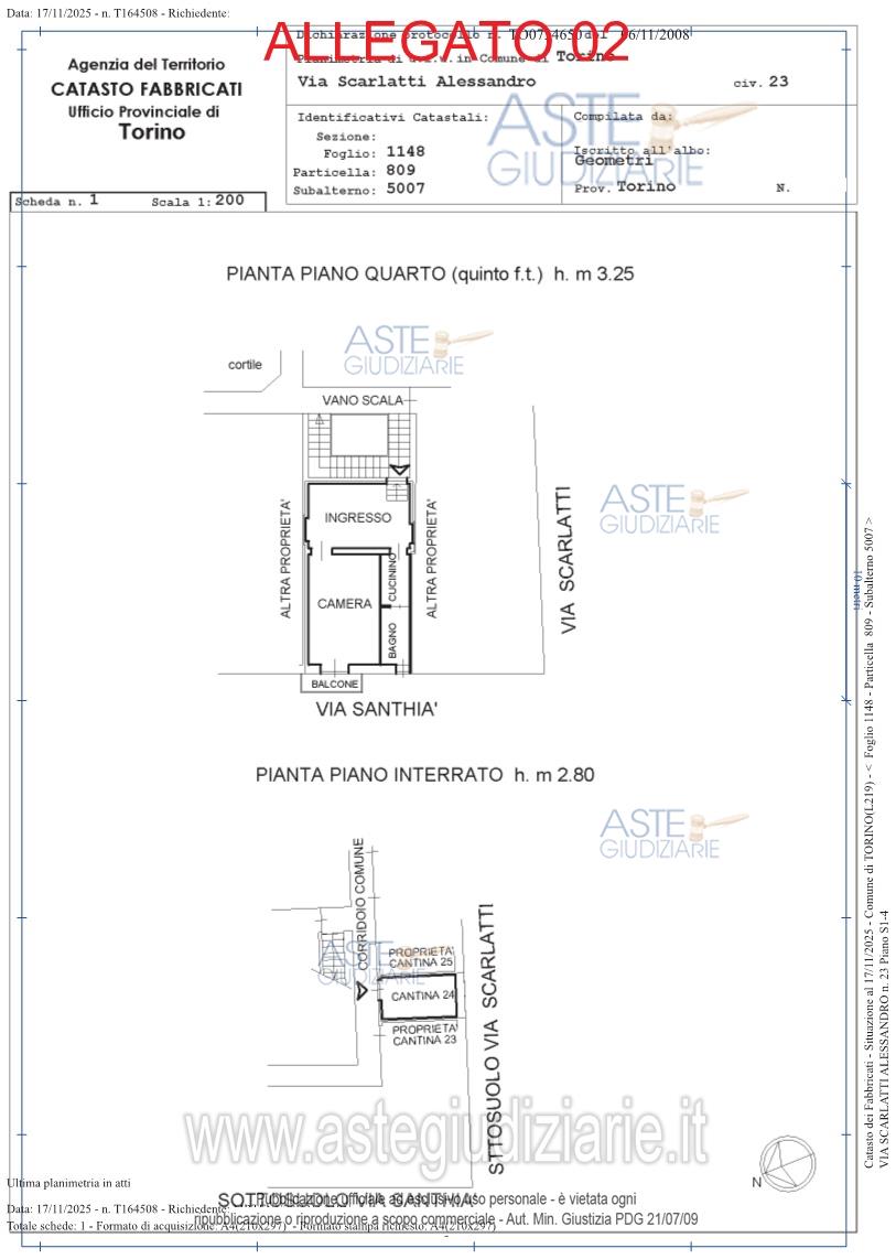 Vendita all'asta Senza incanto, con gara telematica asincrona - LOTTO UNICO: Nel condominio di via Scarlatti n. 23 in Torino, alloggio sito al piano 4° ammezzato (5° f.t.), composto di ingresso su cucinino, bagno, una camera e un balcone. Cantina pertinenziale al piano interrato. Prezzo base € 13.500,00 (offerta minima € 10.125,00). Data inizio operazioni di vendita: 30/06/2026 ore 09:00. Giudice Anna Castellino. Professionista delegato alla vendita Avv. Laura Borgo - Avvocato - Email "borgo.laura@libero.it"; Cell. 0117650645; Tel. 0117650645. Custode Giudiziario Avv. Laura Borgo - Avvocato - Email "borgo.laura@libero.it"; Cell. 0117650645; Tel. 0117650645. Rif. Tribunale di Torino - Espropriazione immobiliare (cartabia) n. 640/2025