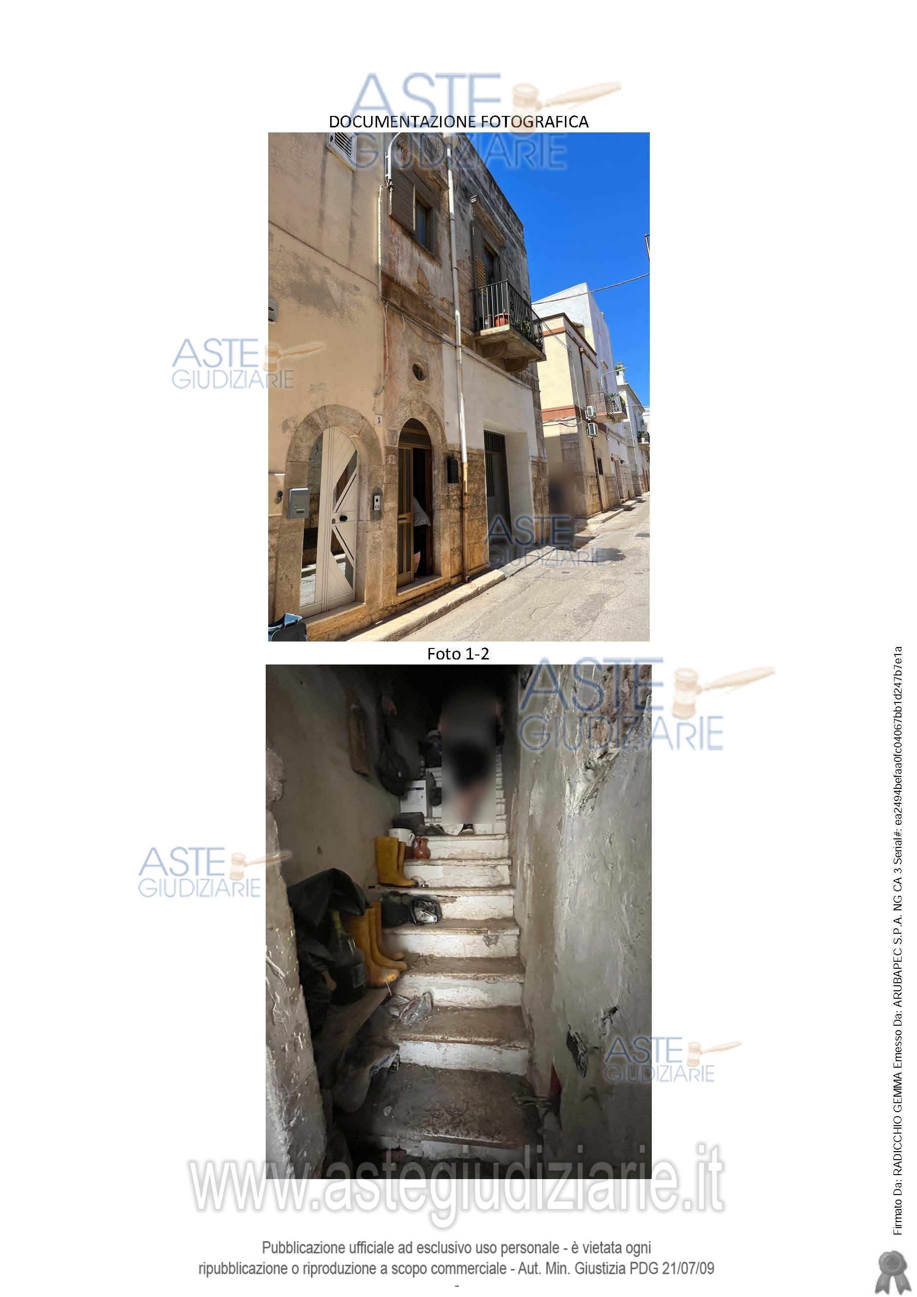 Vendita all'asta Senza incanto, con gara telematica asincrona - LOTTO UNICO: Piena proprietà unità immobiliare uso per civile abitazione composta da due vani oltre servizi al piano primo ed un deposito, oltre a terrazzino al piano secondo fabbricato. Prezzo base € 44.096,47 (offerta minima € 33.072,35). Data inizio operazioni di vendita: 14/04/2026 ore 16:00. Giudice Dott. Marina Cavallo. Professionista delegato alla vendita Avv. Isabella Frappampina - Email "isabellafrappampina@libero.it". Custode Giudiziario Avv. Isabella Frappampina - Email "isabellafrappampina@libero.it". Rif. Tribunale di Bari - Esecuzione immobiliare post legge 80 n. 544/2021