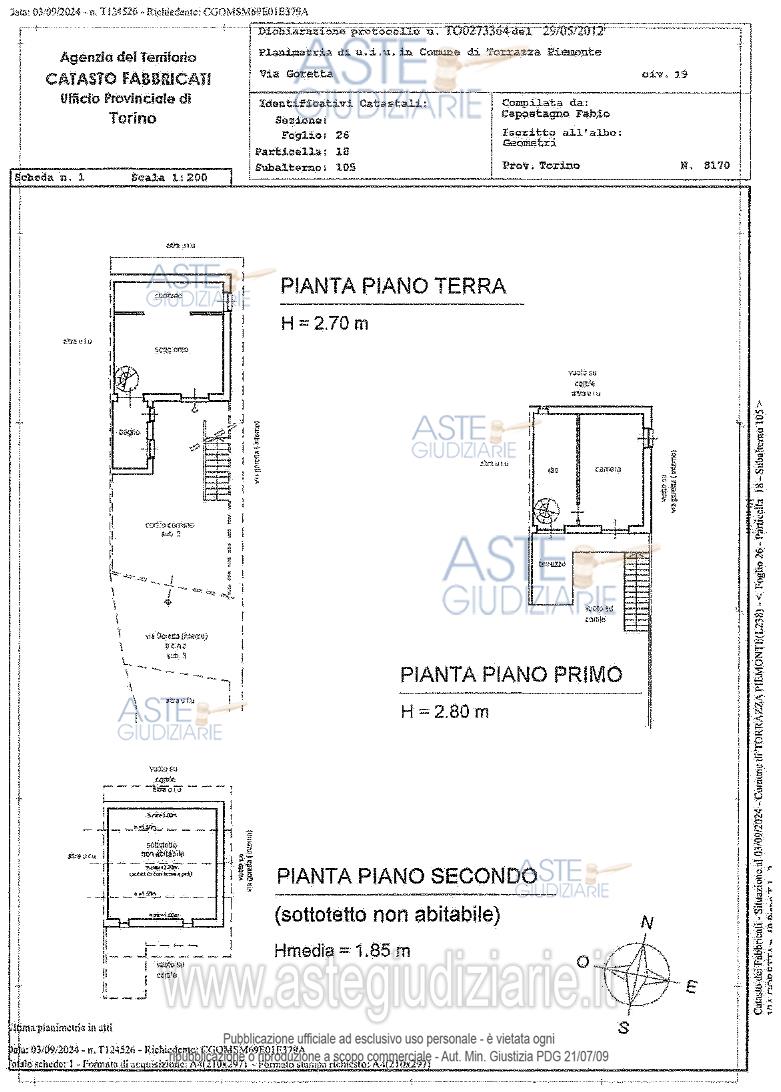 Vendita all'asta Senza incanto, con gara telematica asincrona - LOTTO UNICO: bene n.1: immobile adibito ad abitazione disposto su due piani oltre sottotetto in edificio adue piani fuori terra e sottotetto, con cortile e ingresso dalla via pubblica mediante accessocarraio.bene n.2: garage ubicato a Torrazza Piemonte (TO) via Goretta 19 Piano T. Trattasi di unimmobile adibito ad autorimessa in edificio ad un piano fuori terra, con accesso diretto dallavia pubblica. Prezzo base € 83.250,00 (offerta minima € 62.437,50). Data inizio operazioni di vendita: 02/12/2025 ore 10:00. Professionista delegato alla vendita Avv. Angioletta Bertoldo. Custode Giudiziario Ivg - Email "richiestevisite.ivrea@ivgpiemonte.it". Rif. Tribunale di Ivrea - Espropriazione immobiliare (cartabia) n. 113/2024
