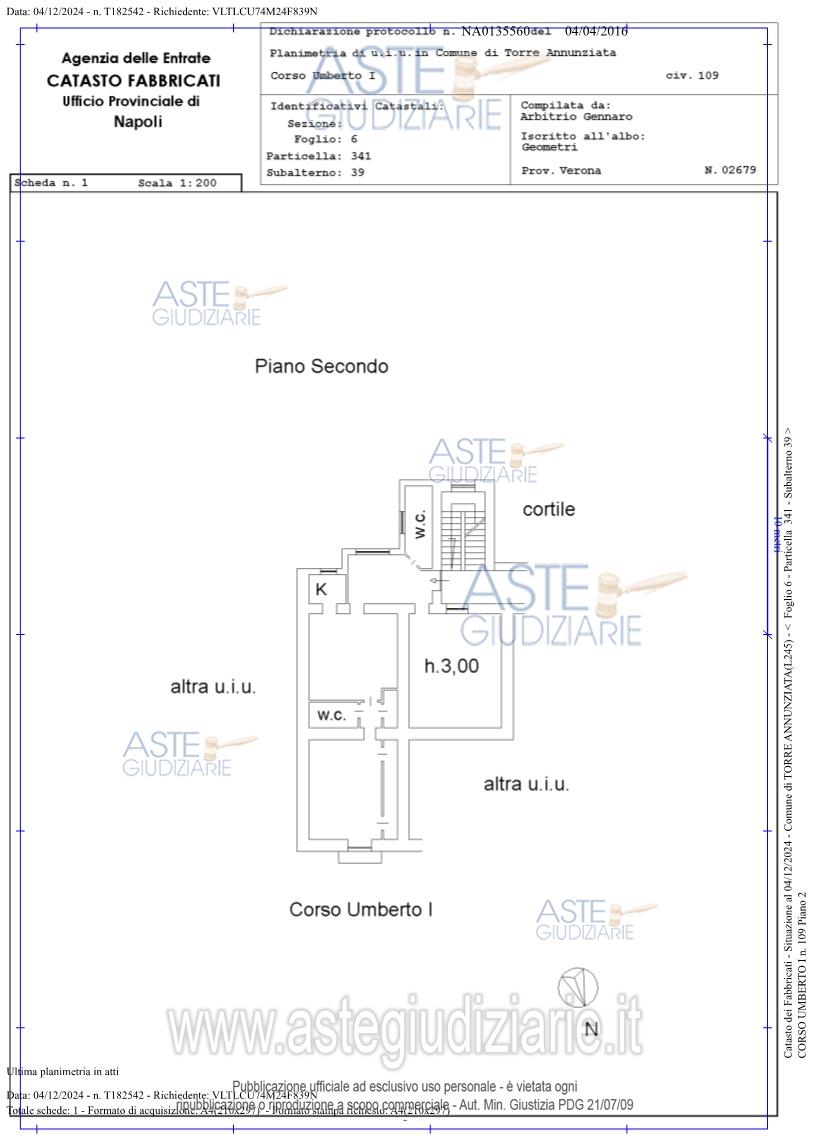 Vendita all'asta Senza incanto, con gara telematica asincrona - LOTTO UNICO: Piena ed intera proprietà di un appartamento in Torre Annunziata (NA), al Corso Umberto I, 109, sito al piano secondo, con accesso dalla prima porta a destra per chi giunge sul ballatoio di riposo, composto da tre vani ed accessori, per complessivi quattro vani virgola cinque catastali. Prezzo base € 168.000,00 (offerta minima € 126.000,00). Data inizio operazioni di vendita: 25/02/2026 ore 16:00. Professionista delegato alla vendita Avv. Luca Vitale - Email "lucavitale@studiolegalevitale.net"; Cell. 3333894703; Tel. 0818733321. Custode Giudiziario Avv. Luca Vitale - Email "lucavitale@studiolegalevitale.net"; Cell. 3333894703; Tel. 0818733321. Rif. Tribunale di Torre Annunziata - Espropriazione immobiliare (cartabia) n. 156/2024
