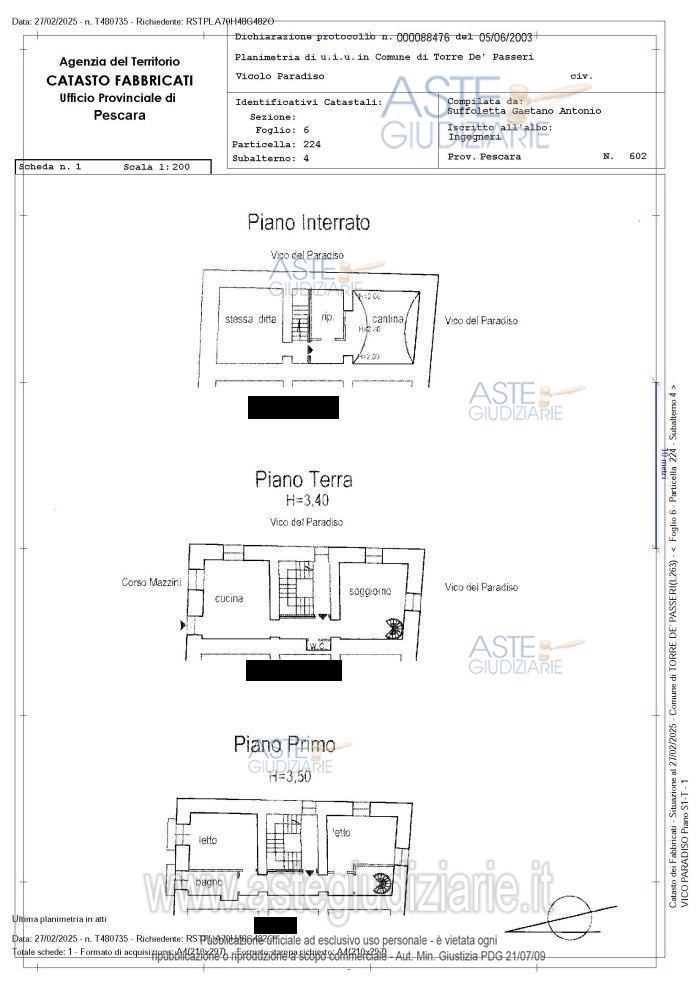 Vendita all'asta Senza incanto, con gara telematica asincrona - LOTTO UNICO: Appartamento ubicato a Torre de' Passeri (PE) - Via Vico Paradiso, piano S1-T-1 per totalimq. 137 di superficie convenzionale. Immobile ad uso civile abitazione ubicato in Vico Paradisoa Torre de' Passeri (PE), in zona centrale, al piano terra e primo con cantina al piano interrato. Prezzo base € 67.000,00 (offerta minima € 50.250,00). Data inizio operazioni di vendita: 26/05/2026 ore 12:00. Professionista delegato alla vendita Dott. Michele Iacovone. Custode Giudiziario Dott. Michele Iacovone - Email "michele.iacovone.pe@gmail.com". Rif. Tribunale di Pescara - Espropriazione immobiliare (cartabia) n. 198/2024