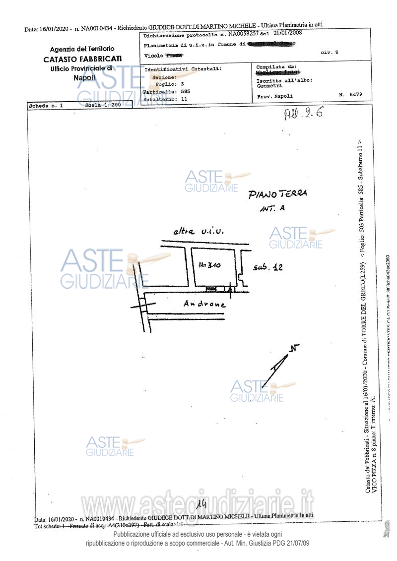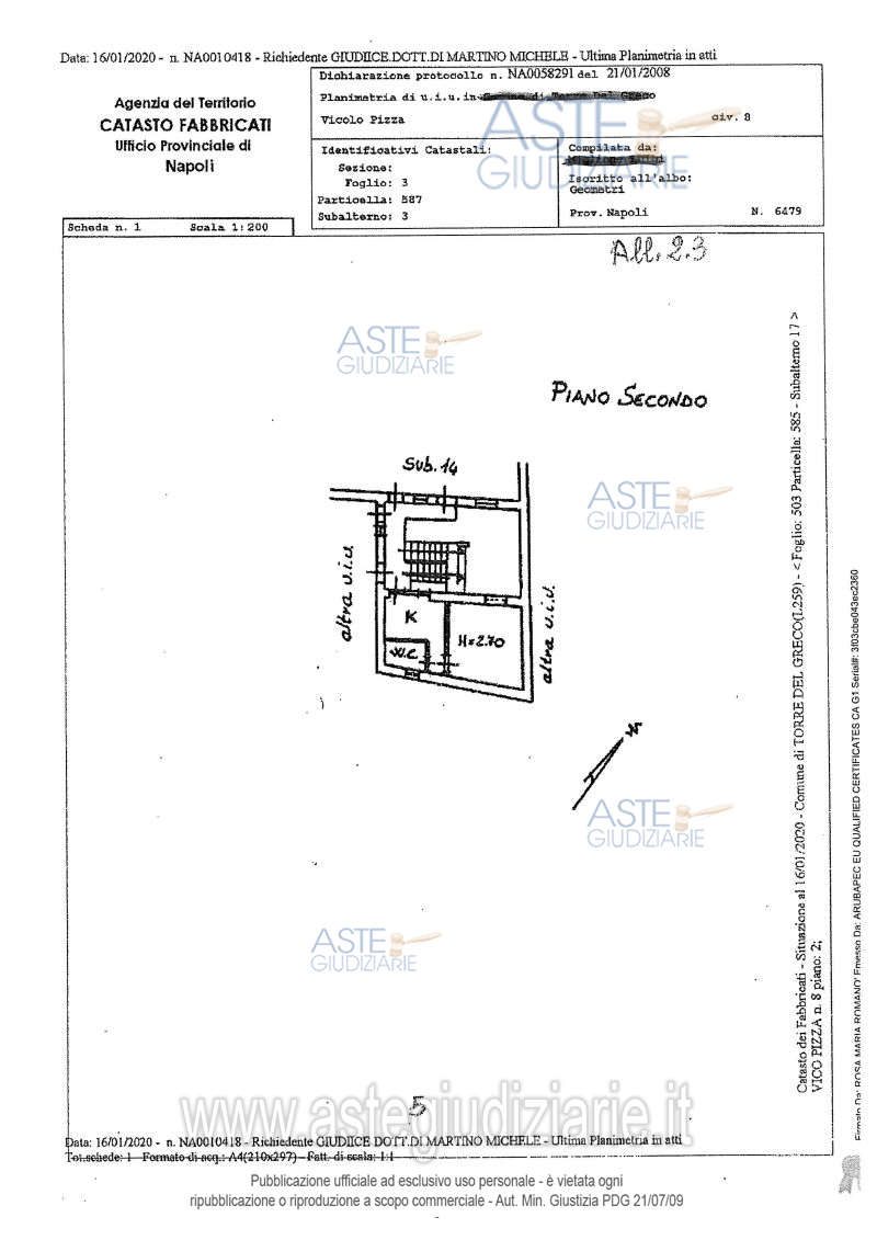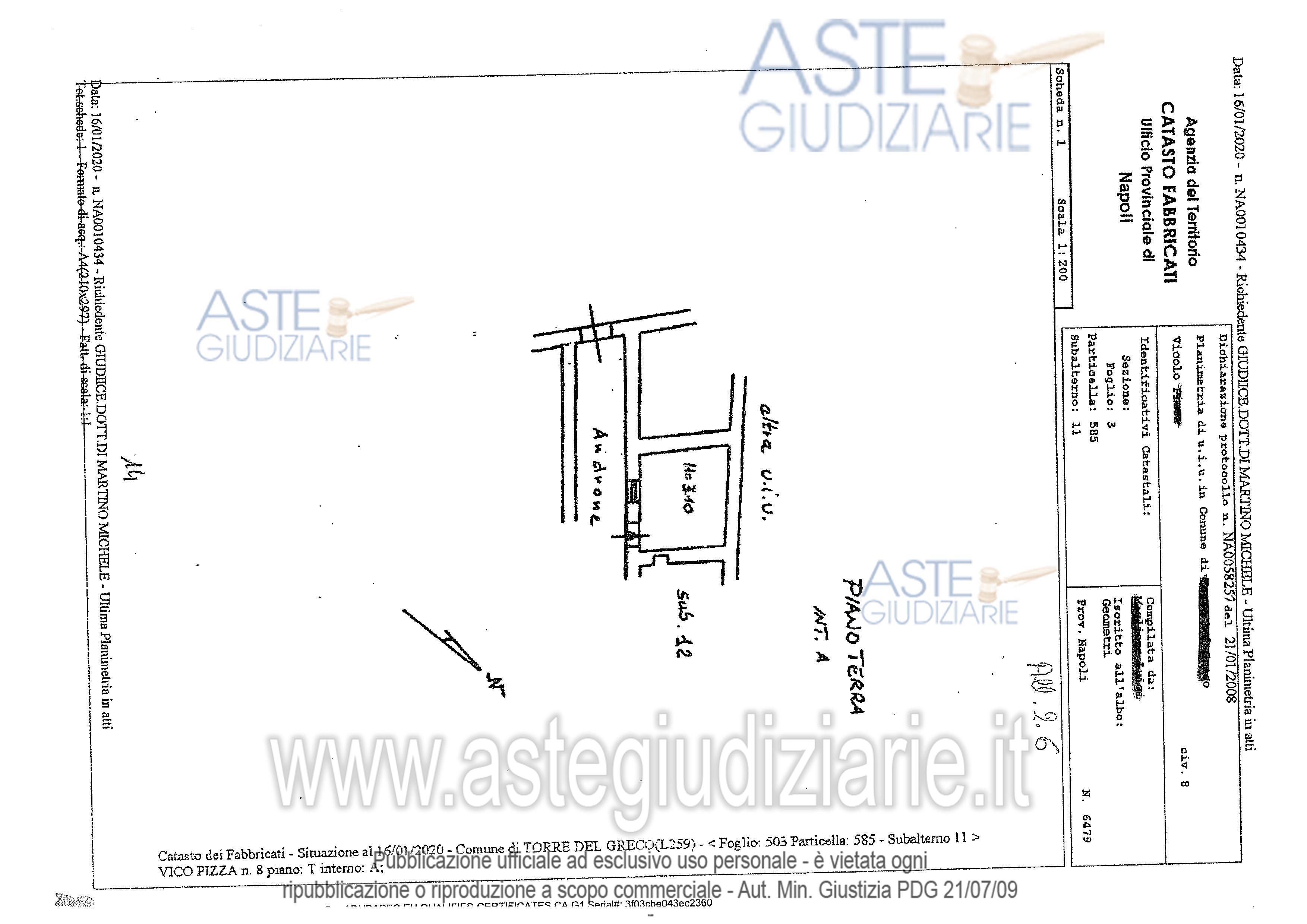 Vendita all'asta Senza incanto, con gara telematica asincrona - LOTTO UNICO: Piena proprietà di appartamento posto al secondo piano e locale deposito al piano terra di un vetusto fabbricato per civili abitazioni sito in Torre del Greco (NA) al Vico Pizza n.2. L’appartamento al secondo piano è composto da due vani con bagno e zona cucina. Il locale deposito al piano terra è composto da un unico ambiente con servizio ed angolo cottura, recentemente ristrutturato, a seguito del quale vi è stata variazione di destinazione d’uso da deposito in abitazione. Prezzo base € 18.984,38 (offerta minima € 14.238,29). Data inizio operazioni di vendita: 11/12/2025 ore 15:30. Professionista delegato alla vendita Avv. Daniela Avallone - Email "avv.avallonedaniela@libero.it"; Tel. 0817613117. Custode Giudiziario Avv. Daniela Avallone - Email "avv.avallonedaniela@libero.it"; Tel. 0817613117. Rif. Tribunale di Torre Annunziata - Esecuzione immobiliare post legge 80 n. 149/2019