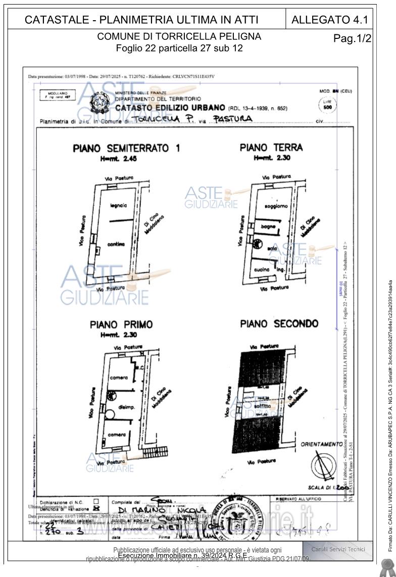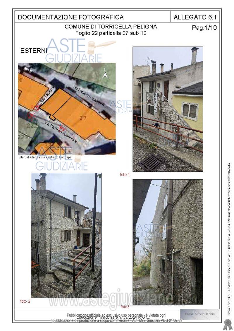 Vendita all'asta Senza incanto, con gara telematica asincrona - LOTTO UNICO: Immobile ad uso abitazione e precisamente: Immobile sito in Torricella Peligna (CH), Via Pastura n.*** e n.***composto da piano seminterrato, piano terra, piano primo e piano sottotetto, due bagni. Il bene è censito al Catasto Fabbricati al foglio 22, particella 27, sub 12 del Comune di Torricella Peligna (CH) di categoria A/3, di classe 1, consistenza catastale di mq. 157 escluse aree scoperte e vani 6,5, rendita Euro 258,49. Prezzo base € 67.655,00 (offerta minima € 50.750,00). Data inizio operazioni di vendita: 27/03/2026 ore 12:00. Professionista delegato alla vendita Avv. Gloriana Capuzzi - Email "glocapuzzi@hotmail.com"; Cell. 3294942956; Tel. 0872717207. Custode Giudiziario Antonello Ferrone - Email "ivglanciano@gmail.com"; Tel. 0872715361. Rif. Tribunale di Lanciano - Espropriazione immobiliare (cartabia) n. 39/2024