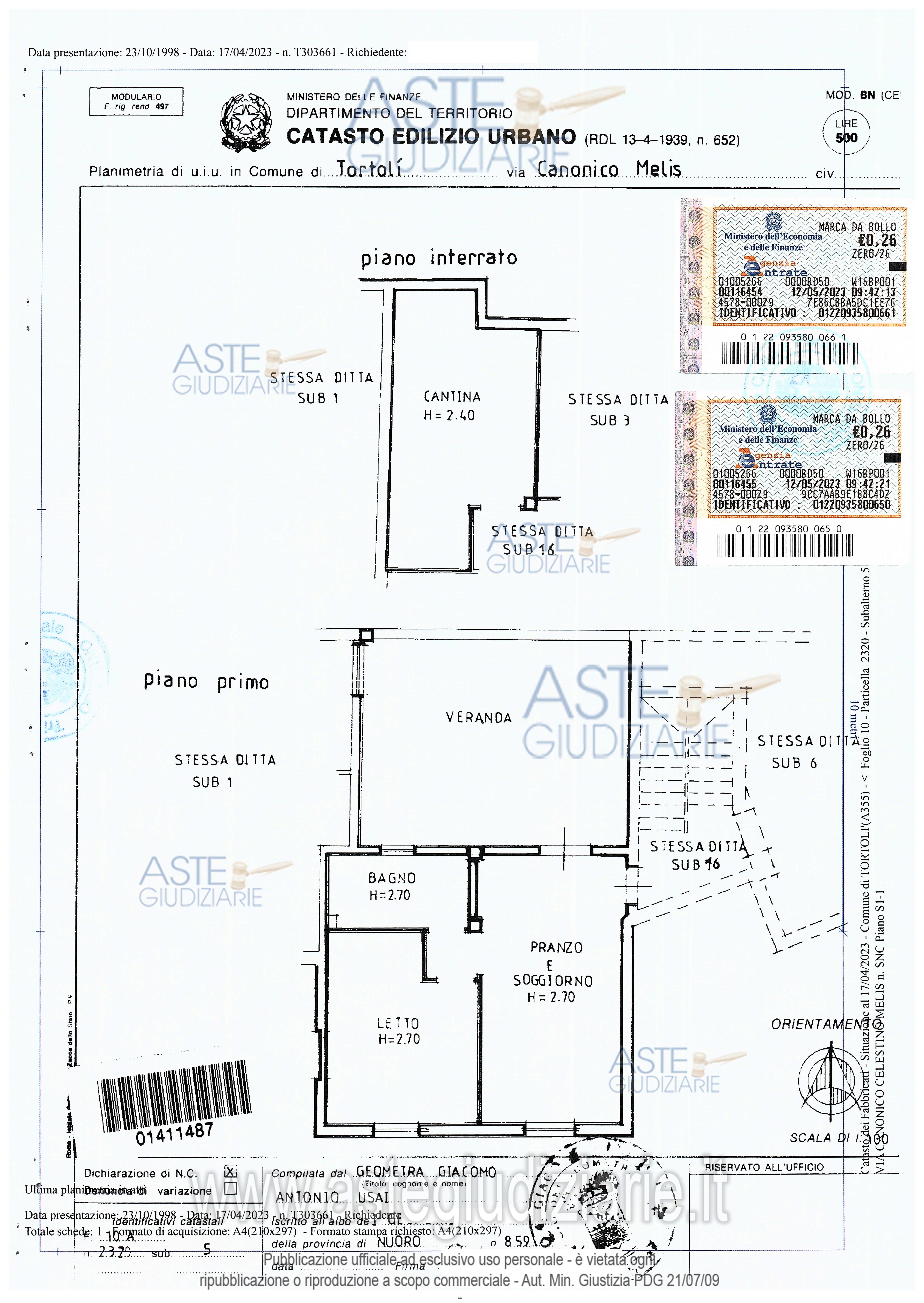 Vendita all'asta Senza incanto, con gara telematica asincrona - LOTTO 1: Piena e perfetta proprietà di un appartamento ad uso civile abitazione posto al piano primo e seminterrato del maggior fabbricato con accesso dalla via Canonico Melis snc, composto di: una cantina al piano seminterrato; un pranzo-soggiorno, una camera, un servizio igienico, un andito di disimpegno ed una veranda al piano primo. Prezzo base € 84.500,00 (offerta minima € 63.375,00). Data inizio operazioni di vendita: 14/01/2026 ore 12:00. Giudice Dott. Riccardo De Vito. Rif. Tribunale di Nuoro - Concordato minore(cci) n. 1/2024
