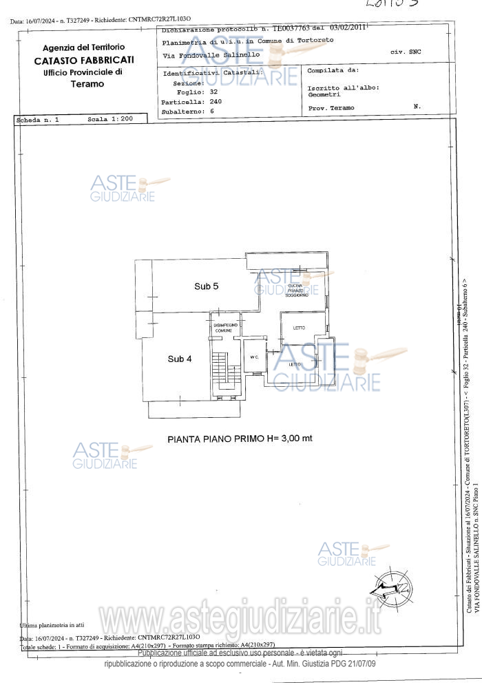 Vendita all'asta Senza incanto, con gara telematica asincrona - LOTTO 3: diritti pari alla piena proprietà di un appartamento sito al piano primo. Prezzo base € 23.684,00 (offerta minima € 17.763,00). Data inizio operazioni di vendita: 29/12/2025 ore 15:00. Giudice Dott. Ninetta D'ignazio. Professionista delegato alla vendita Not. Teresa De Rosa - Email "tderosa@notariato.it"; Tel. 0861570519. Custode Giudiziario Not. Teresa De Rosa - Email "tderosa@notariato.it"; Tel. 0861570519. Rif. Tribunale di Teramo - Espropriazione immobiliare (cartabia) n. 183/2023