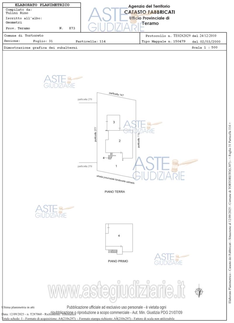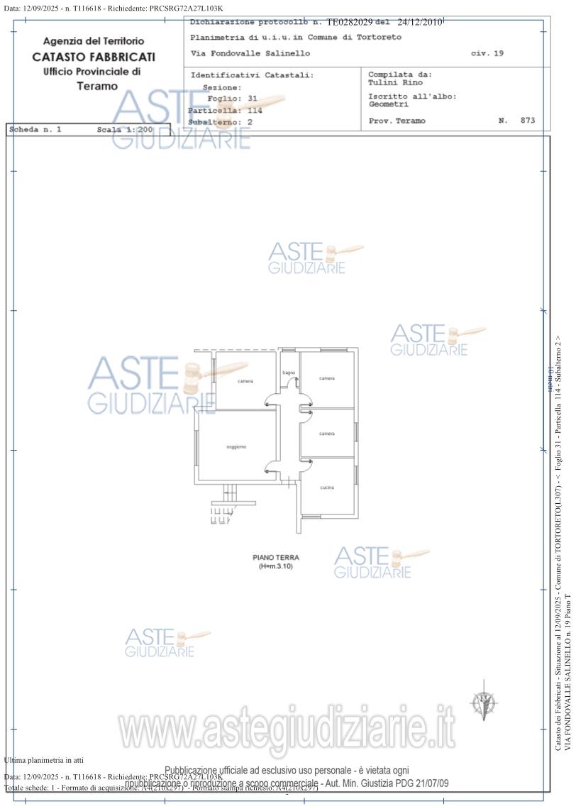 Vendita all'asta Senza incanto, con gara telematica asincrona - LOTTO 1: Appartamento di civile abitazione (sub.2) e locale garage (sub.3) al piano terra, il tutto in Comune di Tortoreto (TE), Via Salino n.19. L'appartamento (sub.2) di civile abitazione al piano terra è composto da ingresso/disimpegno, sala, cucina, camera, bagno e locale adibito a laboratorio; è annesso un locale garage (sub.3) al piano terra con accesso carrabile sul lato Est. Prezzo base € 69.000,00 (offerta minima € 51.750,00). Data inizio operazioni di vendita: 15/04/2026 ore 14:00. Professionista delegato alla vendita Avv. Stefano Bilò - Email "Avvstefanobilo@studiolegalebilo.onmicrosoft.com"; Cell. 3290998468; Tel. 0861279632. Custode Giudiziario Avv. Stefano Bilò - Email "Avvstefanobilo@studiolegalebilo.onmicrosoft.com"; Cell. 3290998468; Tel. 0861279632. Rif. Tribunale di Teramo - Esecuzione immobiliare post legge 80 n. 105/2025