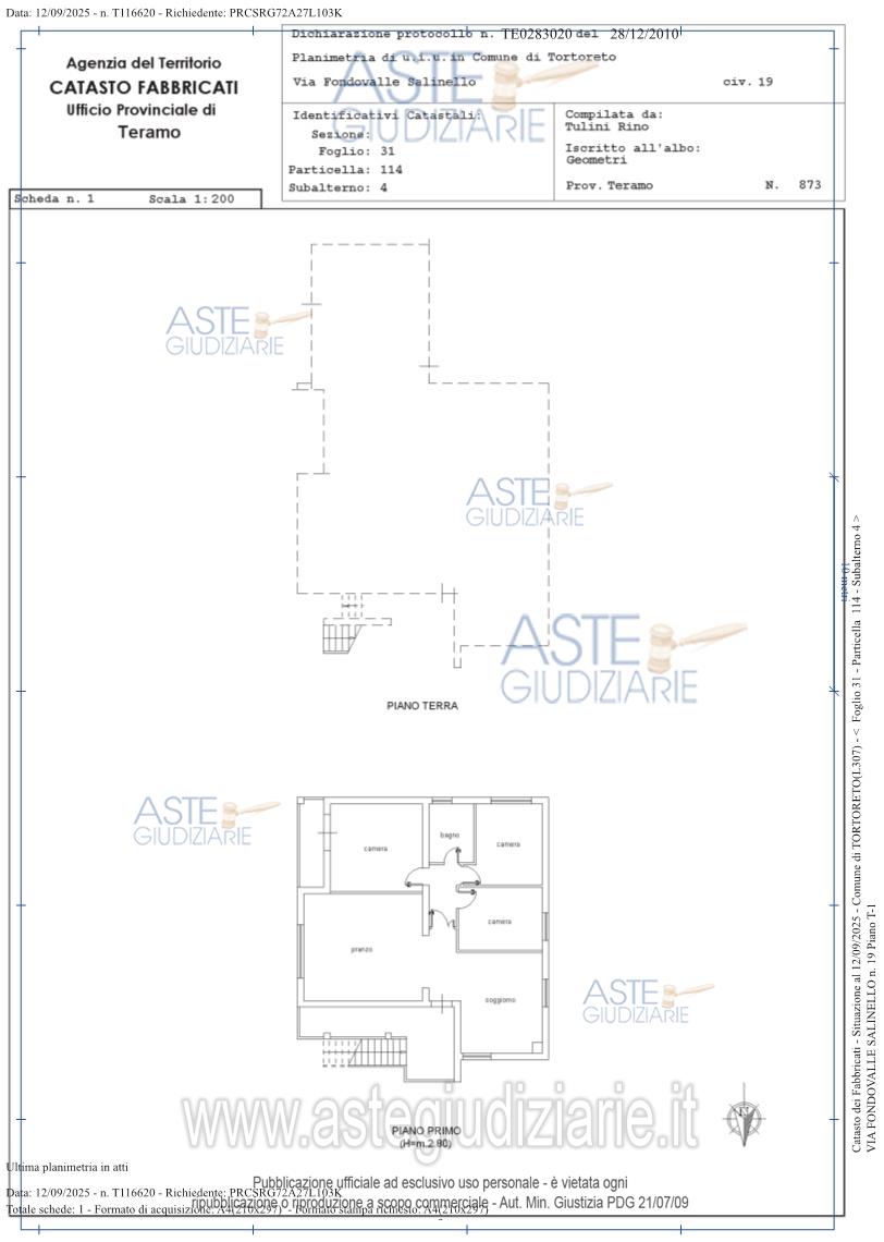 Vendita all'asta Senza incanto, con gara telematica asincrona - LOTTO 2: Appartamento di civile abitazione al piano primo, il tutto in comune di Tortoreto (TE), Via Salino n. 19, composto da ingresso/disimpegno/angolo cottura, n. 3 camere, bagno, balcone, terrazzo; sono annessi un ulteriore terrazzo sul lato Sud ed un locale ripostiglio con copertura in legno lamellare (realizzato senza titolo edilizio abilitativo). Prezzo base € 65.000,00 (offerta minima € 48.750,00). Data inizio operazioni di vendita: 15/04/2026 ore 14:00. Professionista delegato alla vendita Avv. Stefano Bilò - Email "Avvstefanobilo@studiolegalebilo.onmicrosoft.com"; Cell. 3290998468; Tel. 0861279632. Custode Giudiziario Avv. Stefano Bilò - Email "Avvstefanobilo@studiolegalebilo.onmicrosoft.com"; Cell. 3290998468; Tel. 0861279632. Rif. Tribunale di Teramo - Esecuzione immobiliare post legge 80 n. 105/2025