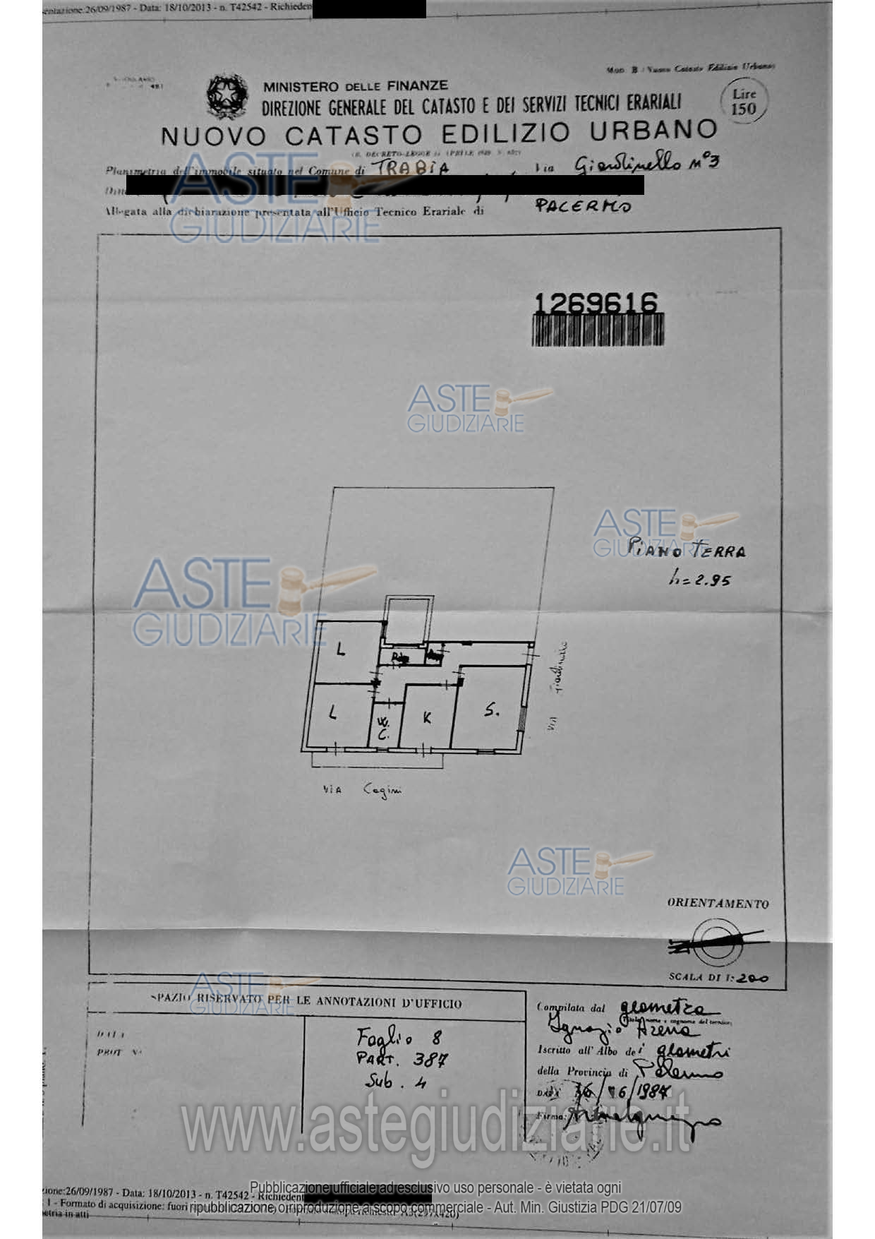 Vendita all'asta Senza incanto, con gara telematica sincrona - LOTTO 02: LOTTO 2 - Appartamento ubicato a Trabia (PA) - Via Giardinello, n. 10, piano TerraAppartamento per civile abitazione con ingresso esclusivo dalla Via Giardinello n. 10, ma con gli affacci e un lungo balcone prospicienti la Via Antonello Gagini.Identificato al catasto Fabbricati - Fg. 8, Part. 387, Sub. 4, Categoria A3L'immobile viene posto in vendita per il diritto di Proprietà (1/1)DISPONIBILITA’ DEL BENE: L'immobile risulta occupato . Prezzo base € 60.750,00 (offerta minima € 45.562,50). Data vendita 26/03/2026 ore 10:00. Giudice Dott. Giovanna Debernardi. Professionista delegato alla vendita Avv. Maria Teresa D'asaro - Email "mtdasaro@gmail.com"; Cell. 3274544640. Custode Giudiziario Avv. Maria Teresa D'asaro - Email "mtdasaro@gmail.com"; Cell. 3274544640. Rif. Tribunale di Termini Imerese - Esecuzione immobiliare post legge 80 n. 51/2021