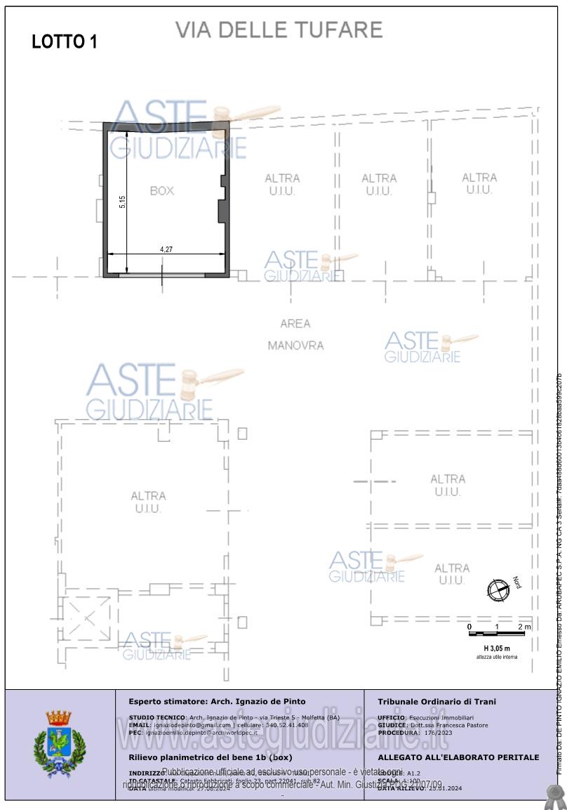 Vendita all'asta Senza incanto, con gara telematica sincrona - LOTTO 1: Piena proprietà per la quota di 1/1 a) dell'appartamento sito in Trani alla Via delle Tufare n. 43 primo piano, scala b interno 2 Categoria A2 mq 107,5 b) del box con accesso da Via Cappuccini n. 16 scala A interno 4 piano S1 di mq 22. Prezzo base € 181.350,00 (offerta minima € 136.100,00). Data vendita 12/12/2025 ore 16:00. Professionista delegato alla vendita Avv. Anna Giulia Murolo - Email "avv.murolo@gmail.com"; Cell. 3355380998; Tel. 0803340085. Custode Giudiziario Avv. Anna Giulia Murolo - Email "avv.murolo@gmail.com"; Cell. 3355380998; Tel. 0803340085. Rif. Tribunale di Trani - Esecuzione immobiliare post legge 80 n. 176/2023