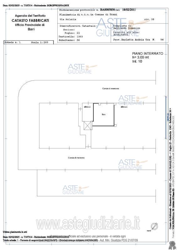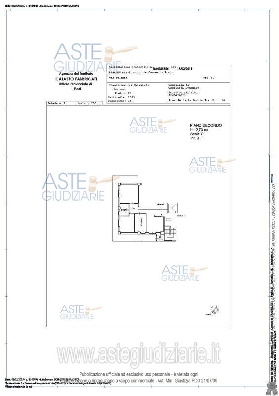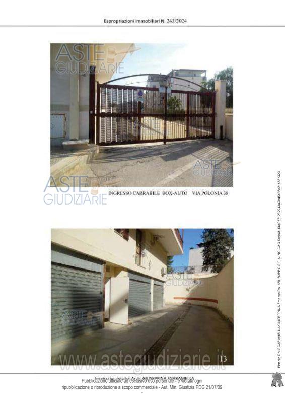 Vendita all'asta Senza incanto, con gara telematica sincrona - LOTTO UNICO: LOTTO UNICOBene n.1-Appartamento ubicato in Trani (BT) alla Via Polonia n.50, scala Y1, interno 9, piano 2, identificato al catasto fabbricati al foglio 23, part. 1363, sub. 11, cat. A/3, cl. 6, consistenza 5,5 vani, sup. catastale 86 mq., rendita € 426,08, piano 2. Bene n.2-Box auto ubicato in Trani (BT) alla Via Polonia n.38, edificio Y1, piano S2, identificato al catasto fabbricati al foglio 23, part. 1363, sub.56, cat. C/6, cl. 3, consistenza 25 mq., sup. catastale 28 mq., rendita € 46,48, piano S2. Prezzo base € 182.000,00 (offerta minima € 136.500,00). Data vendita 21/04/2026 ore 10:30. Giudice Diletta Calò. Professionista delegato alla vendita Avv. Carlo Barracchia - Email "studiolegalebarcan@gmail.com"; Tel. 0883532077. Custode Giudiziario Avv. Carlo Barracchia - Email "studiolegalebarcan@gmail.com"; Tel. 0883532077. Rif. Tribunale di Trani - Esecuzione immobiliare post legge 80 n. 243/2024