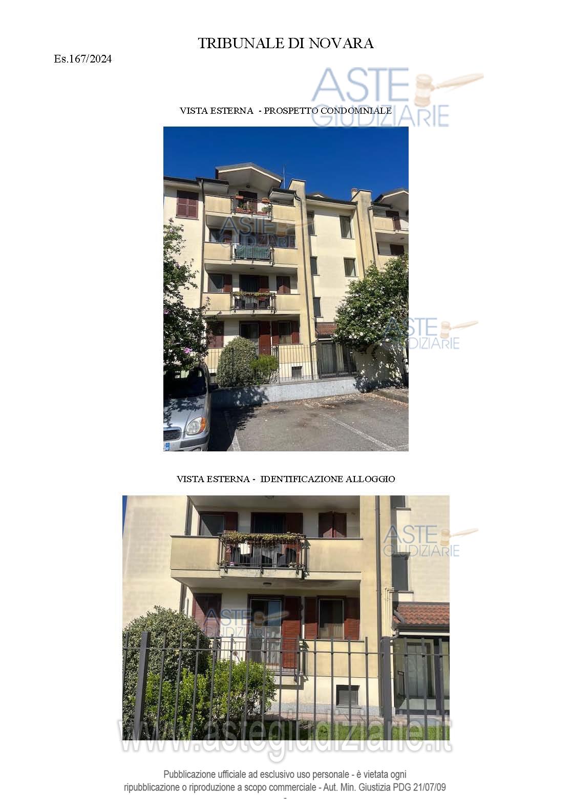 Vendita all'asta Senza incanto, con gara telematica asincrona - LOTTO UNICO: Piena proprietà di 1000/1000, in fabbricato condominiale denominato Condominio Il Campo A di appartamento posto al piano terra/rialzato (1 f.t.), raggiungibile direttamente dall’atrio condominiale, composto da: ingresso su soggiorno con angolo cottura, disimpegno, camera, bagno ed altra camera matrimoniale, oltre ad un balcone esterno al piano terra/rialzato, e cantina di pertinenza posta al piano seminterrato. Prezzo base € 74.000,00 (offerta minima € 55.500,00). Data inizio operazioni di vendita: 04/06/2026 ore 12:00. Giudice Rossella Incardona. Professionista delegato alla vendita Avv. Amanda Cattaneo - Email "segreteria@davnovara.it". Custode Giudiziario Lorenzo Vigone - Email "richiestevisite.novara@ivgpiemonte.it"; Tel. 0321628676. Rif. Tribunale di Novara - Espropriazione immobiliare (cartabia) n. 167/2024