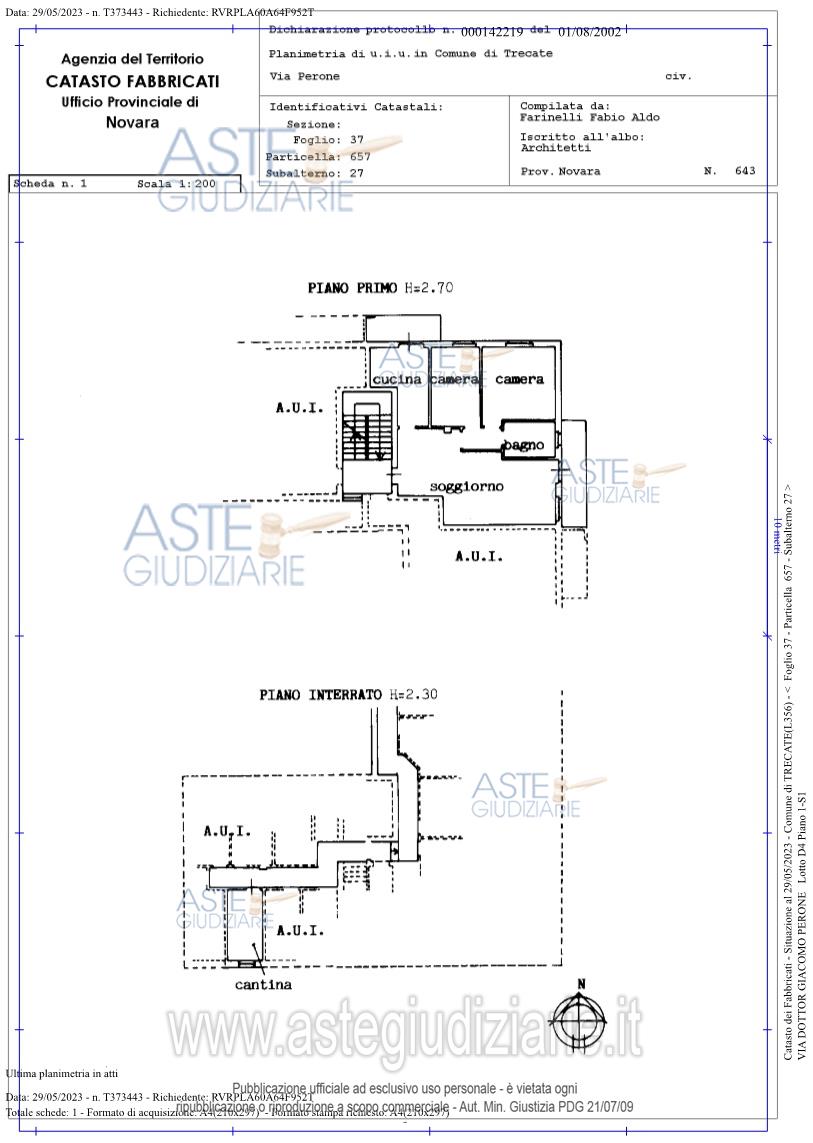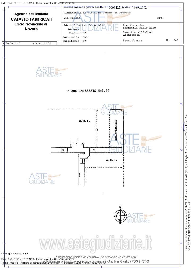 Vendita all'asta Senza incanto, con gara telematica asincrona - LOTTO UNICO: COMUNE DI TRECATE (NO) – Via Perone n.21Quota intera di piena proprietàAppartamento al primo piano con annessa cantina ed autorimessa al piano seminterrato. Prezzo base € 74.840,00 (offerta minima € 56.130,00). Data inizio operazioni di vendita: 18/06/2026 ore 12:00. Professionista delegato alla vendita Not. Vittorio Galliano - Email "novaraprocedureesecutive@gmail.com"; Tel. 0321640095. Custode Giudiziario Ifir Piemonte Ivg - Email "richiestevisite.novara@ivgpiemonte.it"; Tel. 0321628676. Rif. Tribunale di Novara - Esecuzione immobiliare post legge 80 n. 202/2022