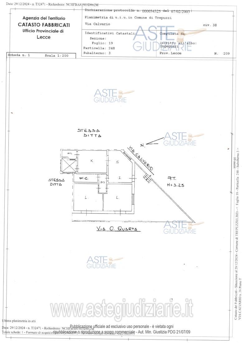 Vendita all'asta Senza incanto, con gara telematica asincrona - LOTTO 1: Piena proprietà per la quota di 1/1 di Abitazione di tipo civile, sita in via Calvario n. 38 a Trepuzzi (LE), della superficie lorda pari a mq 110,00. Prezzo base € 43.650,00 (offerta minima € 32.737,50). Data inizio operazioni di vendita: 18/03/2026 ore 11:30. Professionista delegato alla vendita Avv. Gino Rosario Marzano - Email "ginomarzano@gmail.com"; Cell. 3491746540; Tel. 0836541917. Custode Giudiziario Avv. Gino Rosario Marzano - Email "ginomarzano@gmail.com"; Cell. 3491746540; Tel. 0836541917. Rif. Tribunale di Lecce - Espropriazione immobiliare (cartabia) n. 179/2024