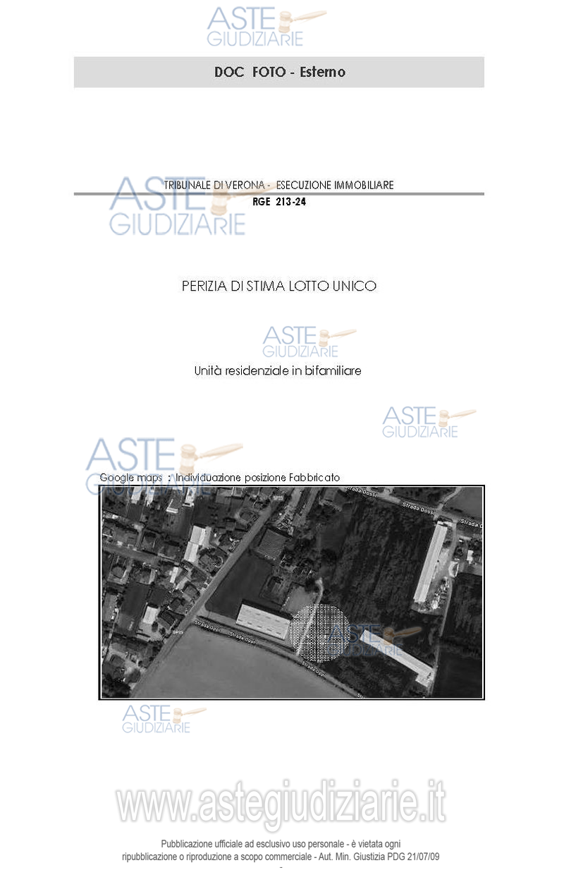 Vendita all'asta Senza incanto, con gara telematica sincrona mista - LOTTO UNICO: LOTTO UNICO - Trevenzuolo (VR), località di Roncolevà, Via Virgiliana n. 1, in bifamiliare degli anni '60 su due piani fuori terra e con due ingressi indipendenti, piena proprietà di appartamento al piano primo della bifamiliare, con terrazzo e scala esterna di collegamento. Sono compresi i proporzionali diritti di comproprietà su enti e spazi comuni art. 1117 c.c., ivi compresa l’area di sedime e pertinenza del fabbricato C.T. del Comune di Trevenzuolo (VR), fg. 28 - mn. 235 – ente urbano di ha 00.19.76. Prezzo base € 45.000,00 (offerta minima € 33.750,00). Data vendita 12/02/2026 ore 14:30. Giudice Dott. Paola Salmaso. Professionista delegato alla vendita Not. Francesco Sarullo - Email "notes@notariato.it"; Tel. 0458006661. Custode Giudiziario Avv. Vera Valvassori - Email "avv.veravalvassori@gmail.com"; Cell. 3497145080. Rif. Tribunale di Verona - Espropriazione immobiliare (cartabia) n. 213/2024
