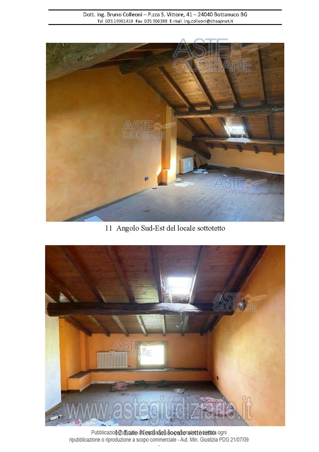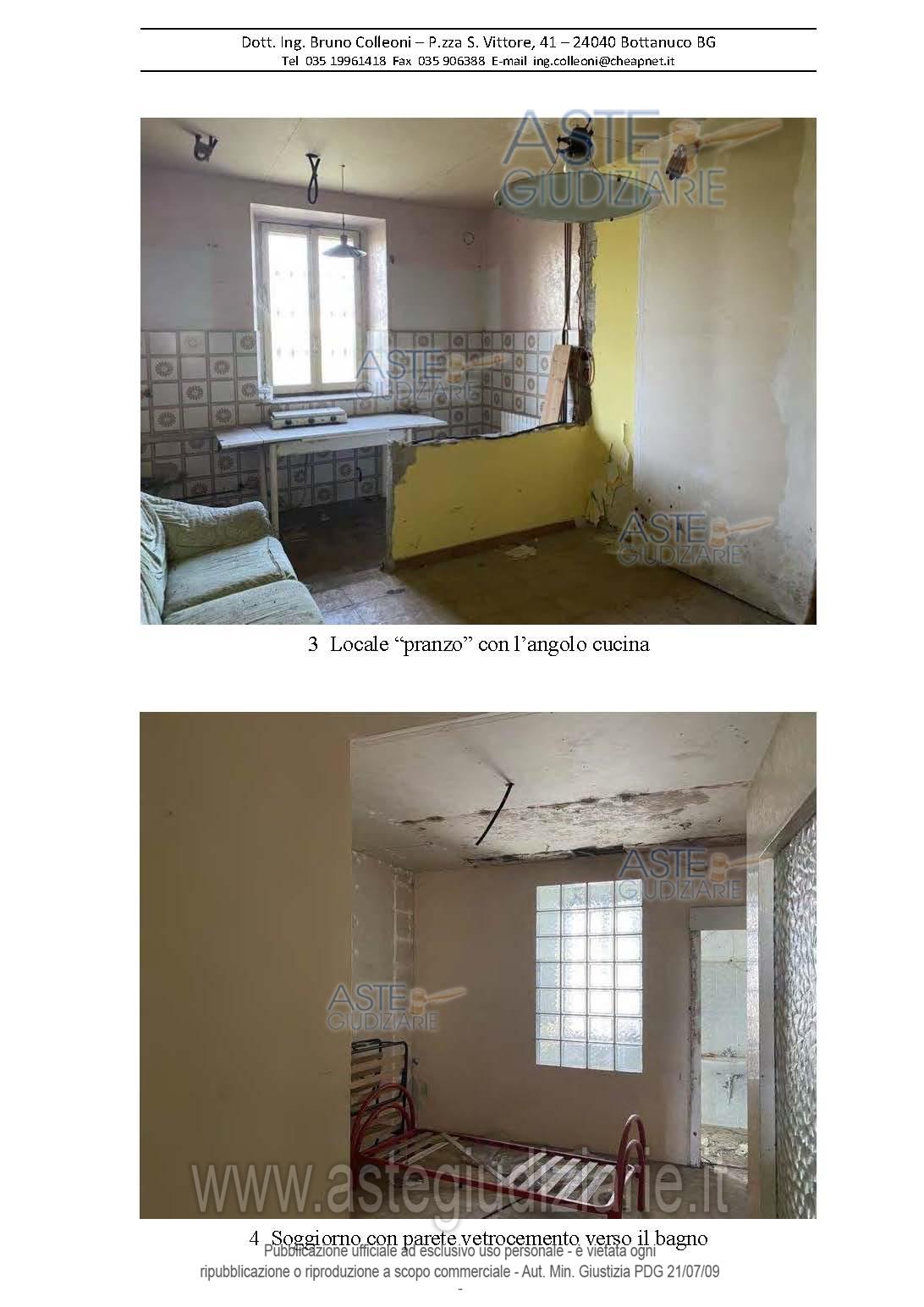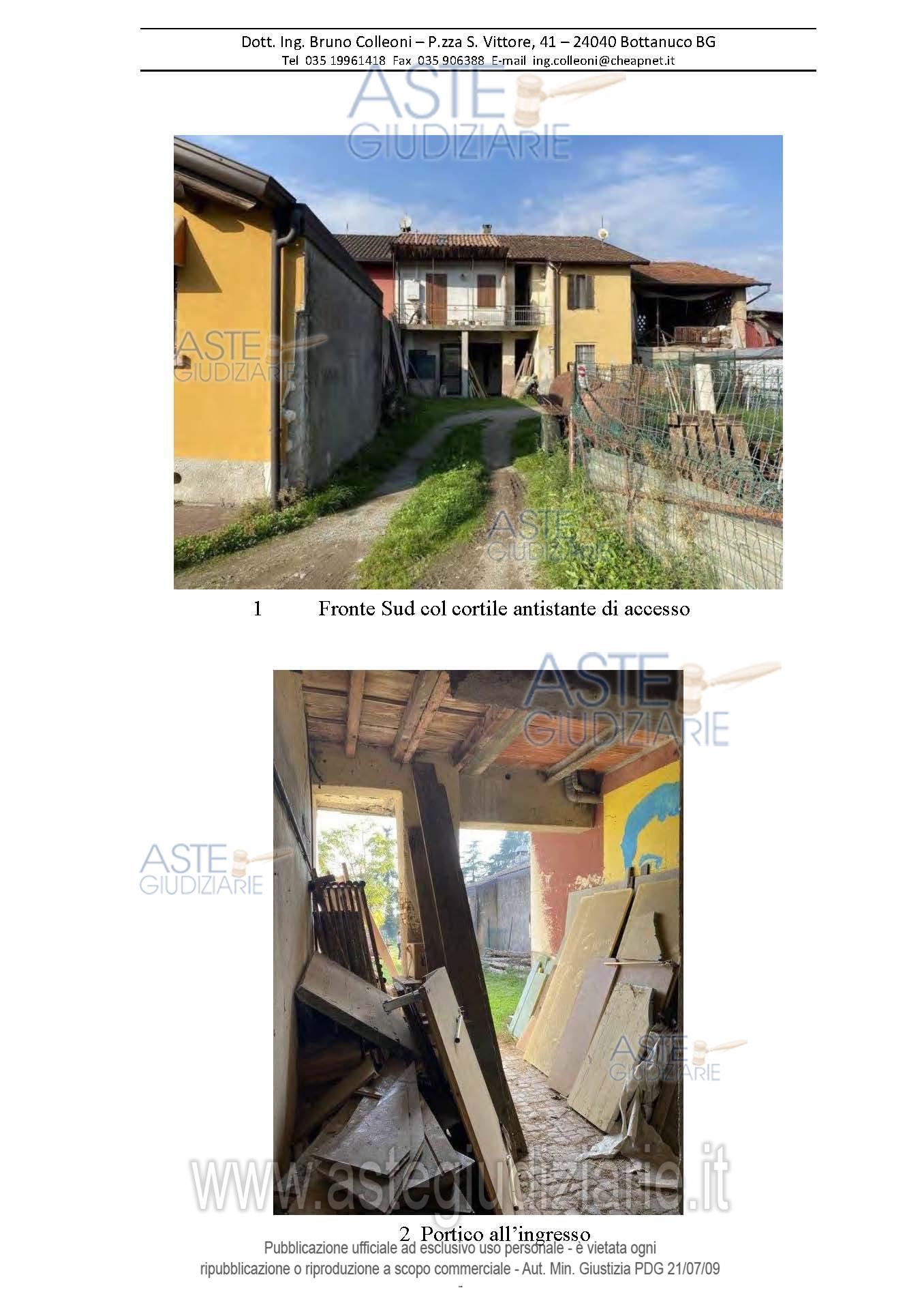 Vendita all'asta Senza incanto, con gara telematica asincrona - LOTTO UNICO: In cascinale tramite un’area cortilizia comune si accede all’immobile posto sul lato est dell’edificio. L’abitazione è composta da locali su tre piani: terra, primo piano e piano sottotetto. Dalle scale comuni si accede al piano terra composto da cucina, pranzo, soggiorno, bagno ripostiglio e portico. Il piano primo è composto da due camere, bagno, ripostiglio e loggia; il piano secondo è un sottotetto accessibile dal piano primo dalla scaletta interna e dalle scale comuni. Prezzo base € 38.252,00 (offerta minima € 28.689,00). Data inizio operazioni di vendita: 25/03/2026 ore 10:15. Giudice Luca Verzeni. Professionista delegato alla vendita Dott. Claudio Carretta - Email "claudio.carretta@studio-carretta-bg.it"; Tel. 035220400. Custode Giudiziario Dott. Claudio Carretta - Email "claudio.carretta@studio-carretta-bg.it"; Tel. 035220400. Rif. Tribunale di Bergamo - Espropriazione immobiliare (cartabia) n. 411/2024