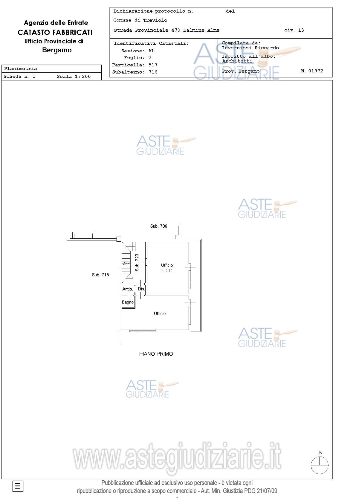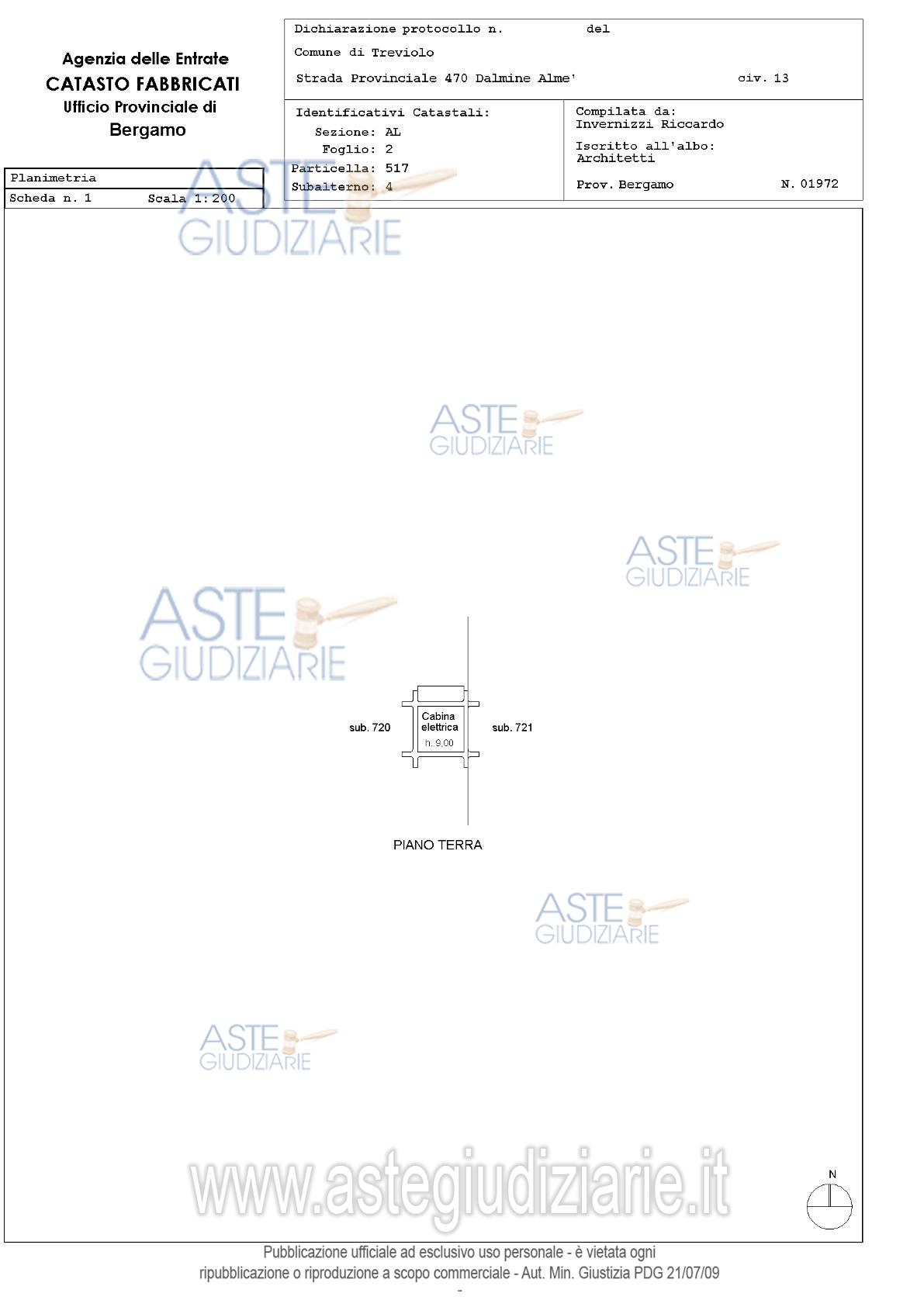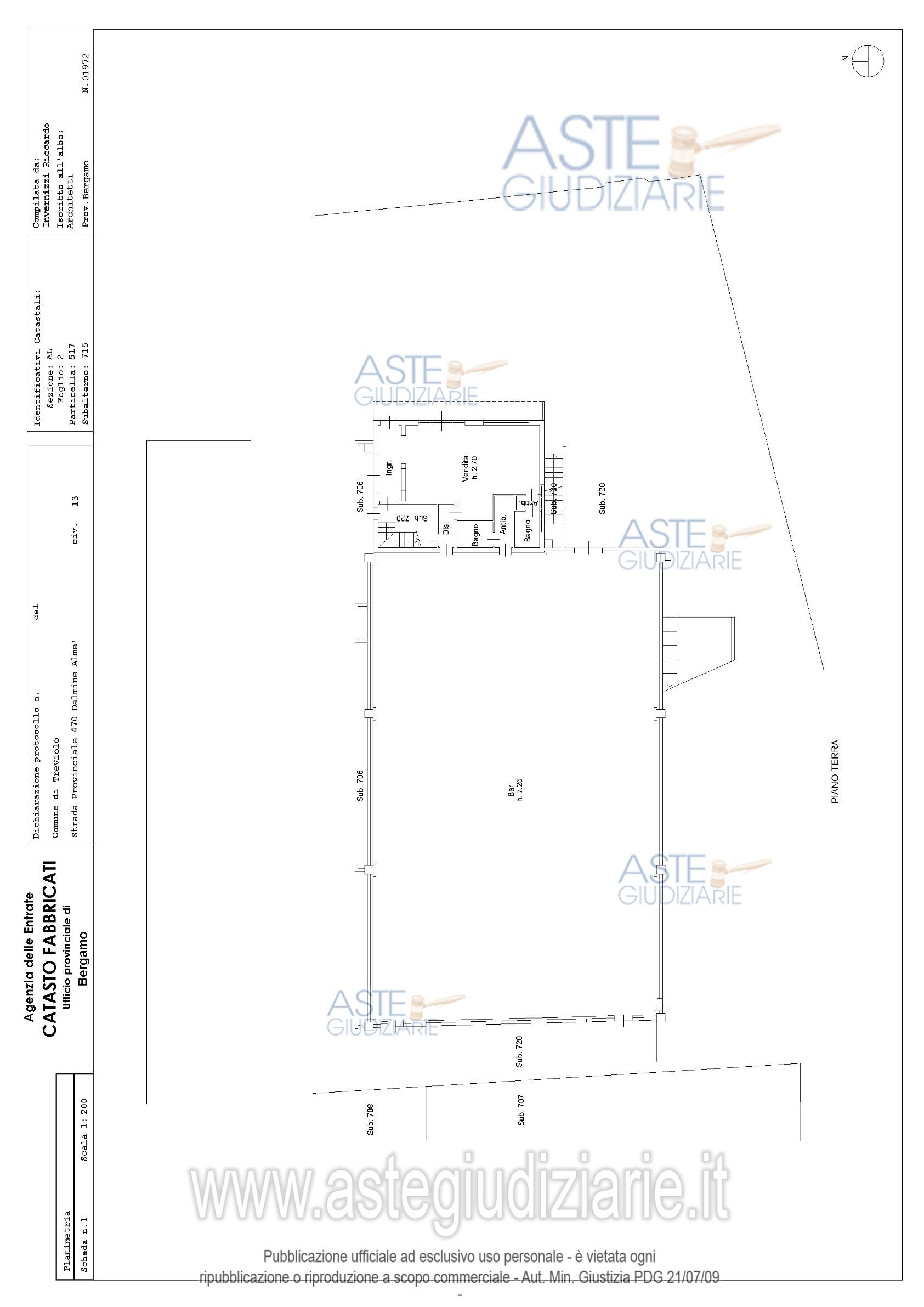 Vendita all'asta Senza incanto, con gara telematica asincrona - LOTTO 1: Edificio: - appartamento al p. secondo composto da disimpegno, soggiorno, cucina, due camere, bagno, balcone; - cantina (con bocca di lupo) al p. primo sottostrada; - ripostiglio (con bocca di lupo) al p. primo sottostrada; - ufficio al p. primo composto da disimpegno due locali (con due accessi separati dal pianerottolo comune), antibagno, bagno; - ingresso, locale vendita, antibagno, bagno, con disimpegno, retrostante locale bar, altro antibagno e bagno; - cabina di trasformazione elettrica (ENEL). Prezzo base € 237.064,00 (offerta minima € 177.798,00). Data inizio operazioni di vendita: 04/03/2026 ore 09:30. Giudice Dott. Angela Randazzo. Professionista delegato alla vendita Not. Francesco Boni - Email "assnotbergamo@notariato.it"; Tel. 035219426. Custode Giudiziario Avv. Simone Minola - Email "simoneminola@virgilio.it"; Tel. 0350779384. Rif. Tribunale di Bergamo - Esecuzione immobiliare post legge 80 n. 1/2023