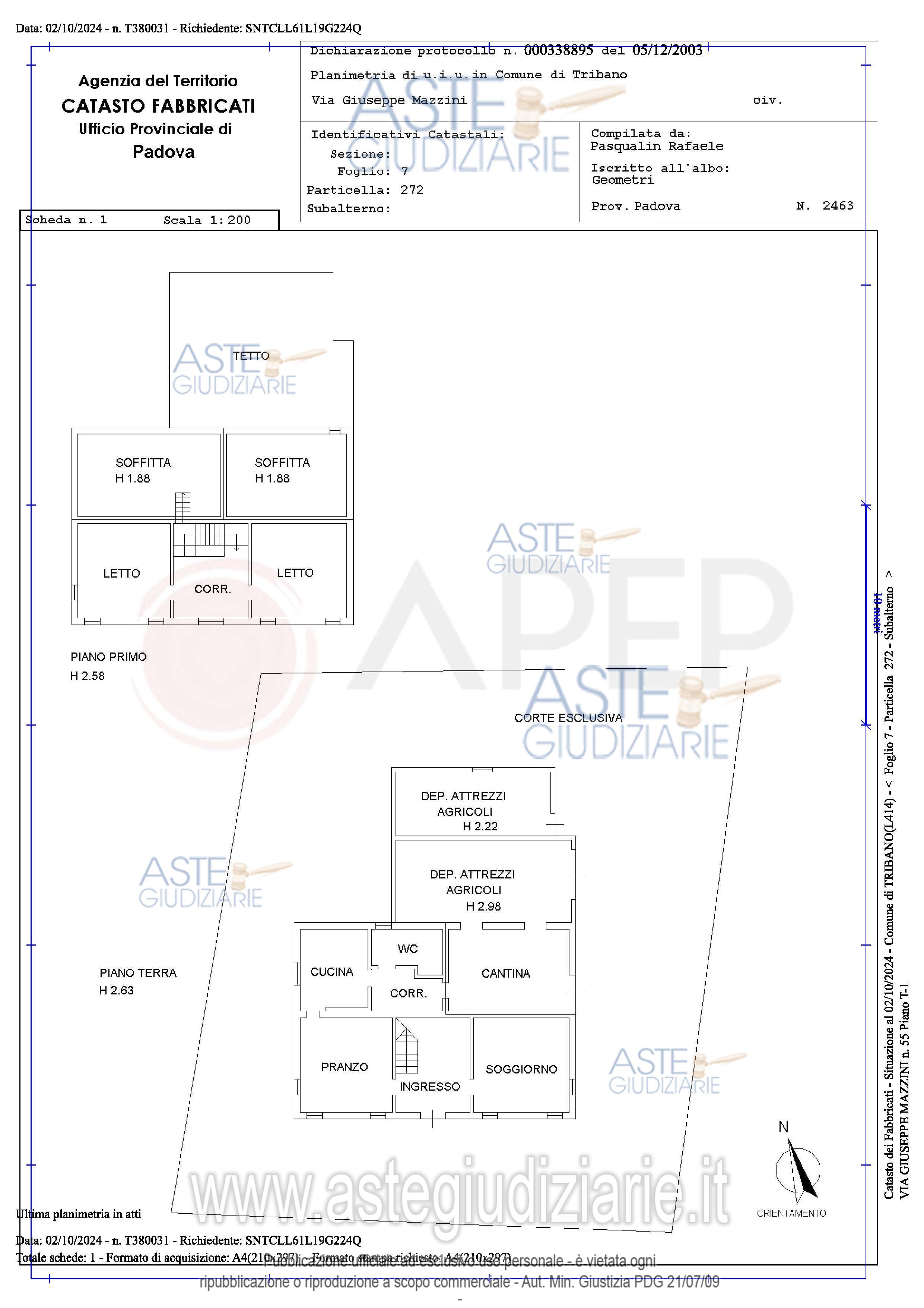 Vendita in attesa dell'emissione del nuovo bando d'asta. LOTTO UNICO: Lotto Unico - piena proprietà di fabbricato ad uso abitativo, sito in Comune di Tribano (PD), via Mazzini n. 55, disposto ai piani terra e primo, dotato, tra le altre di due ricoveri attrezzi al piano terra, in parte al grezzo e di soffitta al grezzo al piano primo, insistente su un'area coperta e scoperta esclusiva di catastali mq. 570 per una superficie commerciale complessiva di mq. 226. Occupato con titolo. Ultimo prezzo base € 135.000,00 (offerta minima € 101.250,00). Giudice Amenduni. Professionista delegato alla vendita Not. Laura Mazzari - Email "aste@apepnotai.it"; Tel. 049651228. Custode Giudiziario Apep - Email "visita@apepnotai.it"; Tel. 049651228. Rif. Tribunale di Padova - Espropriazione immobiliare (cartabia) n. 249/2024