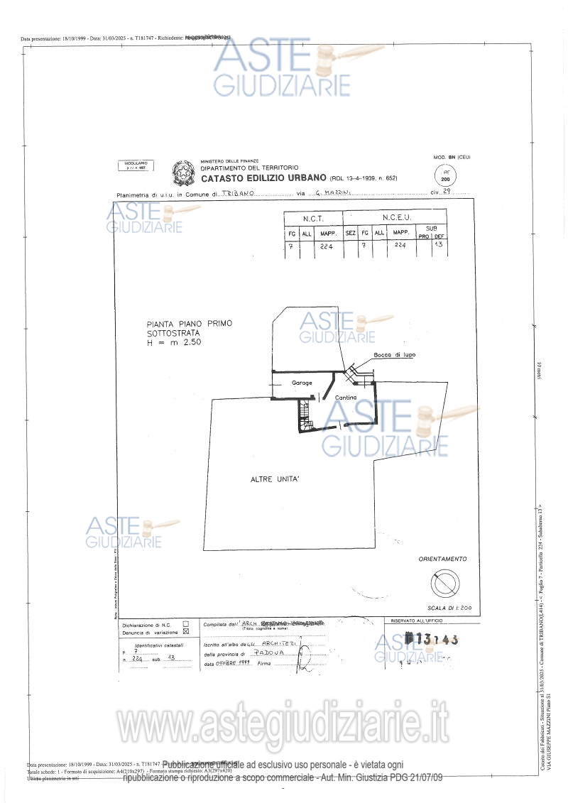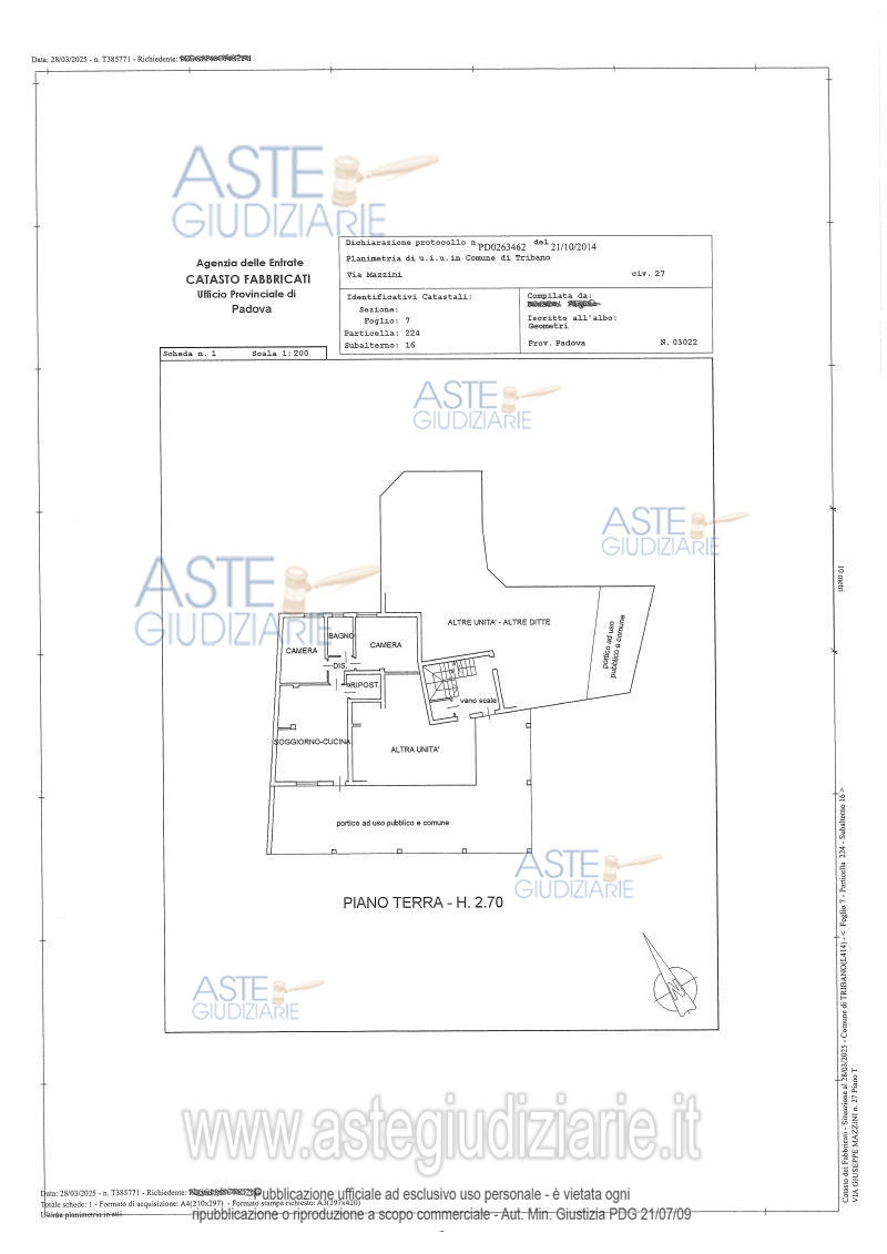 Vendita all'asta Senza incanto, con gara telematica sincrona - LOTTO UNICO: Appartamento composto da soggiorno con angolo cottura, n. 2 camere da letto , n. 1 servizio igienico e disimpegno una cantinola separata ed un posto auto coperto . Abitazione di mq 63,96 circa; cantinola di mq 6 circa e posto auto di 12,50 mq circa . Prezzo base € 31.500,00 (offerta minima € 24.000,00). Data vendita 15/12/2025 ore 15:30. Custode Giudiziario Dott. Luigi Barzazi - Email "aste@consulstudio.com"; Tel. 049773206. Rif. Tribunale di Padova - Espropriazione immobiliare (cartabia) n. 311/2024