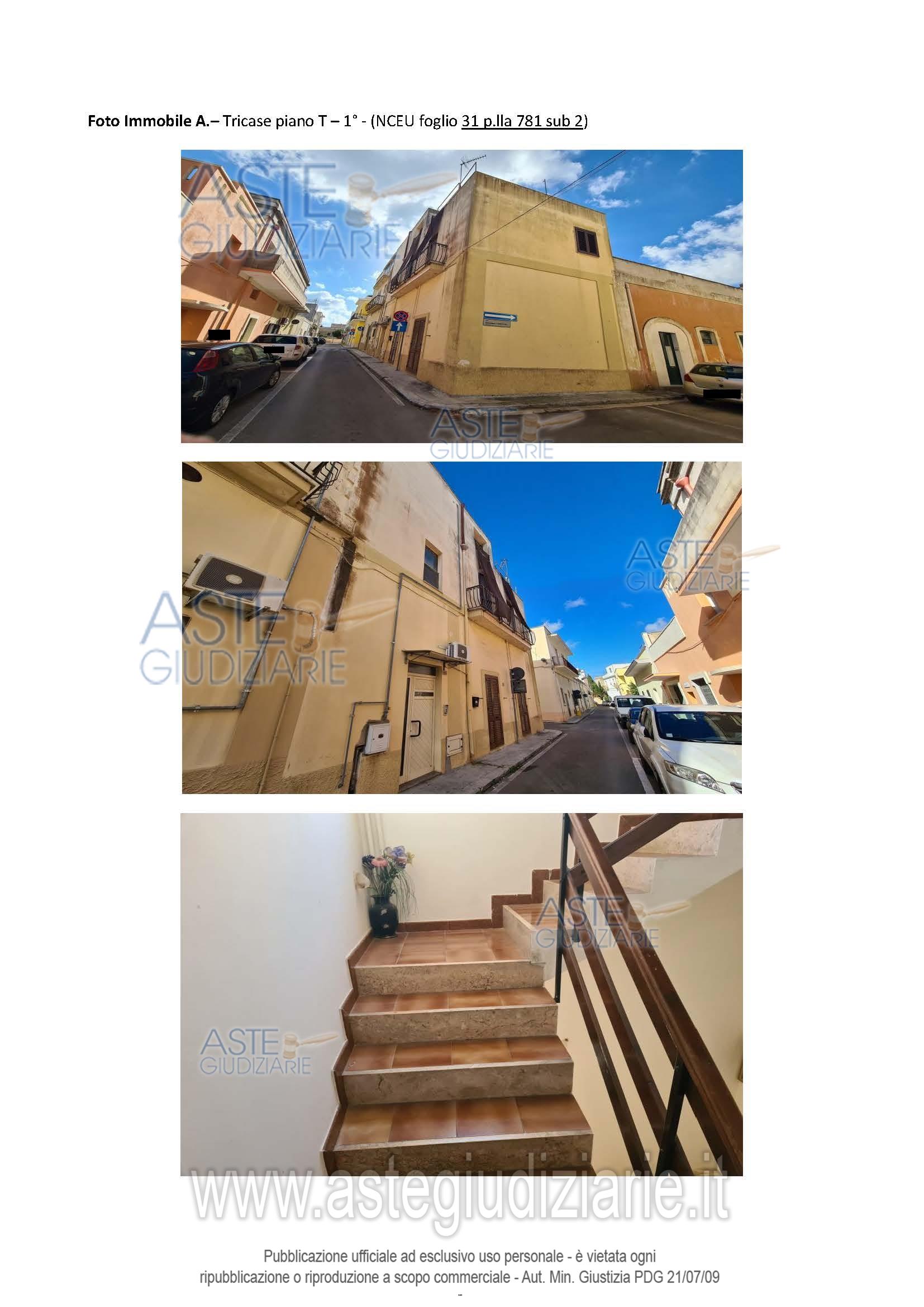 Vendita all'asta Senza incanto, con gara telematica asincrona - LOTTO UNICO: Piena proprietà per la quota di 1000/1000 di abitazione sita in Tricase (Le) alla Via Luigi Ratiglia n. 34. Prezzo base € 37.125,00 (offerta minima € 27.843,75). Data inizio operazioni di vendita: 20/04/2026 ore 09:30. Professionista delegato alla vendita Avv. Roberta Rosato - Email "robertarosato@libero.it"; Cell. 3283585330; Tel. 3283585330. Custode Giudiziario Avv. Roberta Rosato - Email "robertarosato@libero.it"; Cell. 3283585330; Tel. 3283585330. Rif. Tribunale di Lecce - Espropriazione immobiliare (cartabia) n. 261/2024