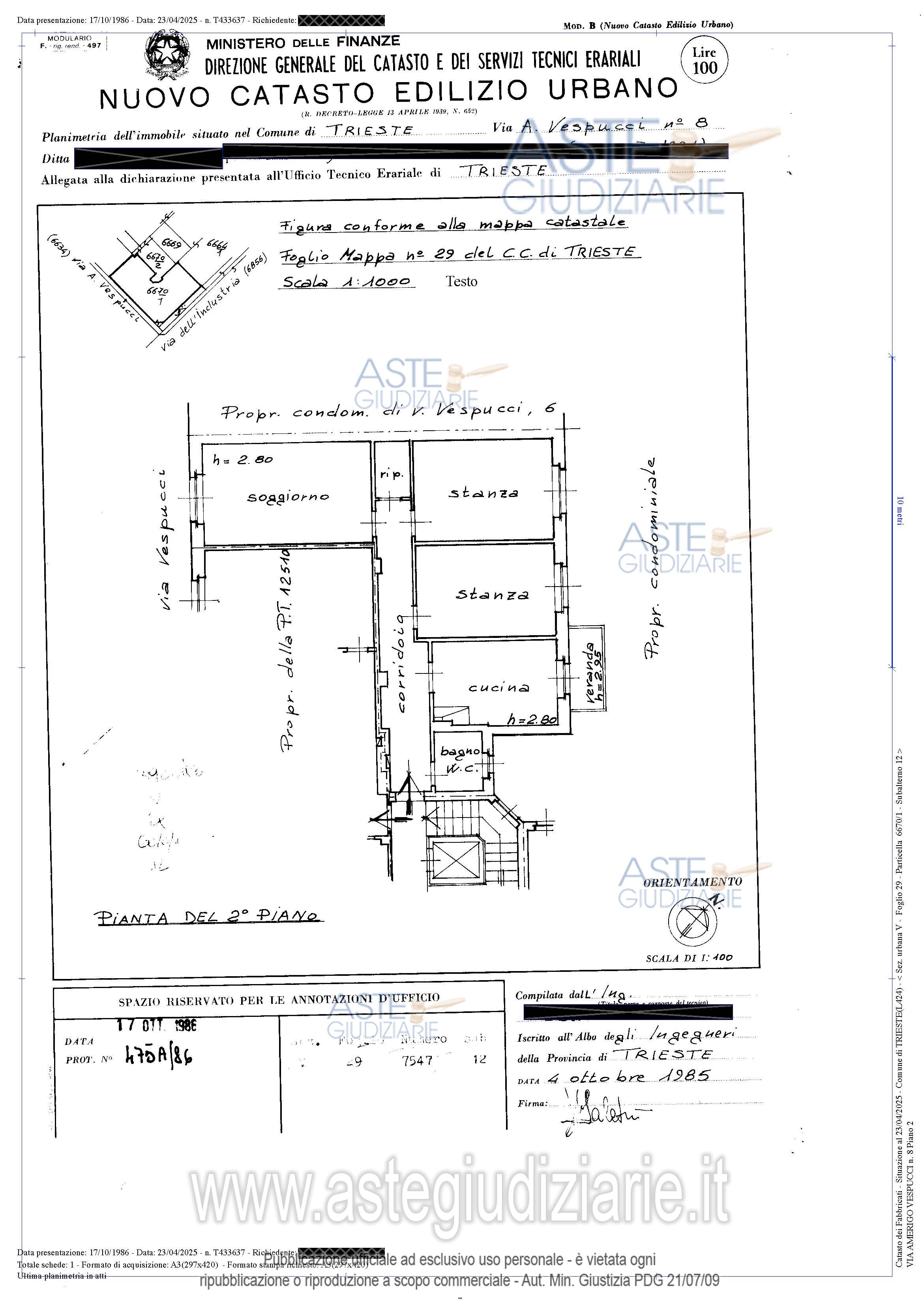 Vendita in attesa dell'emissione del nuovo bando d'asta. LOTTO UNICO: Appartamento sito al piano 2 del Condominio di Via Vespucci n. 8, Trieste, composto da ingresso, bagno-w.c., soggiorno con angolo cottura con relativa veranda sulla corte, corridoio, ripostiglio e due stanze, per una superficie commerciale di 92,00 mq. Lo stabile di Via Vespucci n. 8 è stato oggetto di recente straordinaria manutenzione delle parti comuni con intervento di efficientamento energetico delle facciate (sia lato strada che lato cortile interno). L’edificio è dotato di ascensore condominiale. Ultimo prezzo base € 158.500,00 (offerta minima € 118.875,00). Professionista delegato alla vendita Avv. Giancarlo Ressani - Email "giancarlo.ressani@gmail.com"; Tel. 0402419325. Custode Giudiziario Dott. Maurizio Bucci - Email "studiorigotti@libero.it"; Cell. 3481300469; Tel. 040370547. Rif. Tribunale di Trieste - Espropriazione immobiliare (cartabia) n. 7/2025
