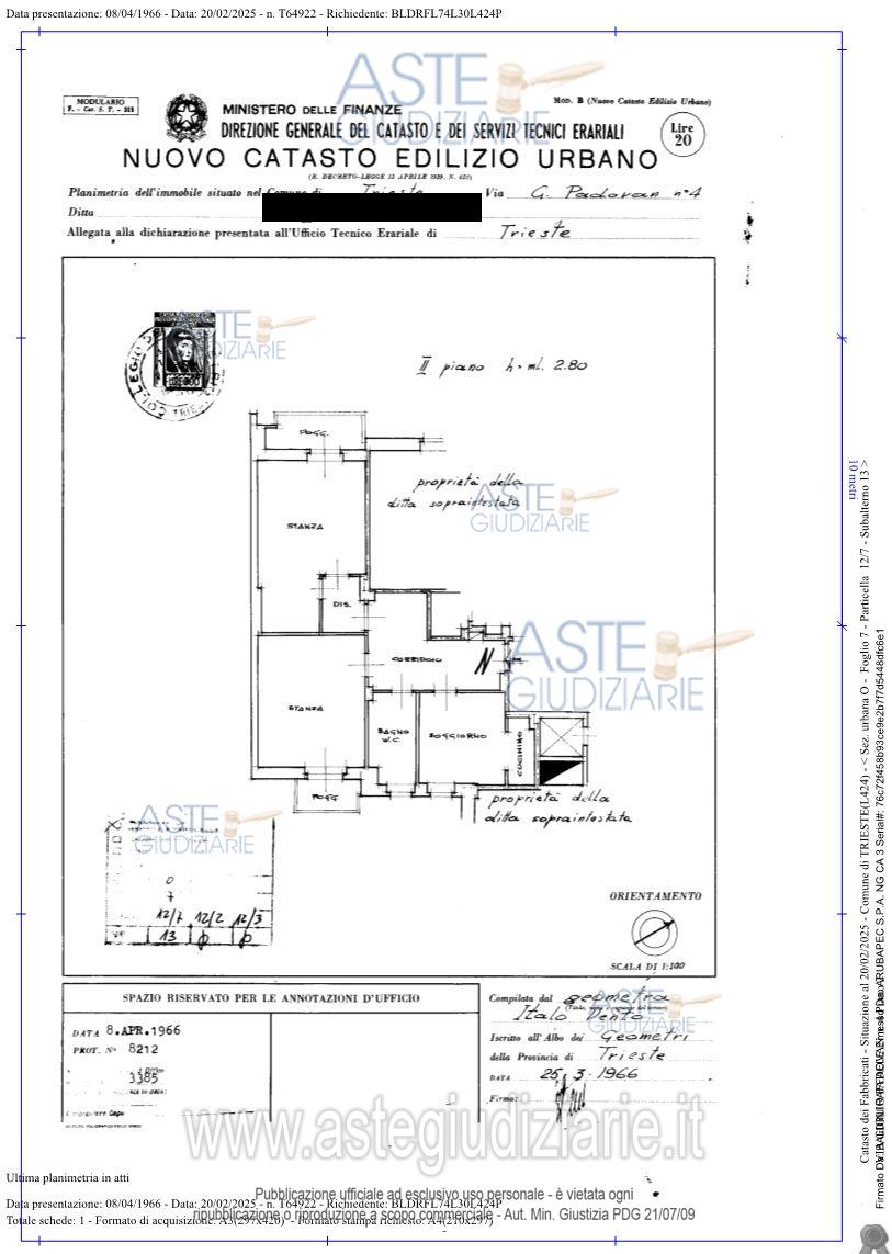 Vendita all'asta Senza incanto, con gara telematica sincrona mista - LOTTO UNICO: Alloggio sito al secondo piano di via Giglio Padovan n. 4 a Trieste, composto da ingresso, cucina, bagno, camera da letto, soggiorno e due poggioli. L'alloggio è servito da ascensore. L’unità immobiliare ha una superficie commerciale di 81mq (con esclusione di aree scoperte: 79mq). Prezzo base € 98.000,00 (offerta minima € 73.500,00). Data vendita 18/02/2026 ore 10:30. Professionista delegato alla vendita Avv. Caterina Masoli - Email "avv.masoli@studiolegalepiemontesi.it"; Tel. 040365465. Custode Giudiziario Avv. Caterina Masoli - Email "avv.masoli@studiolegalepiemontesi.it"; Tel. 040365465. Rif. Tribunale di Trieste - Esecuzione immobiliare n. 100/2024
