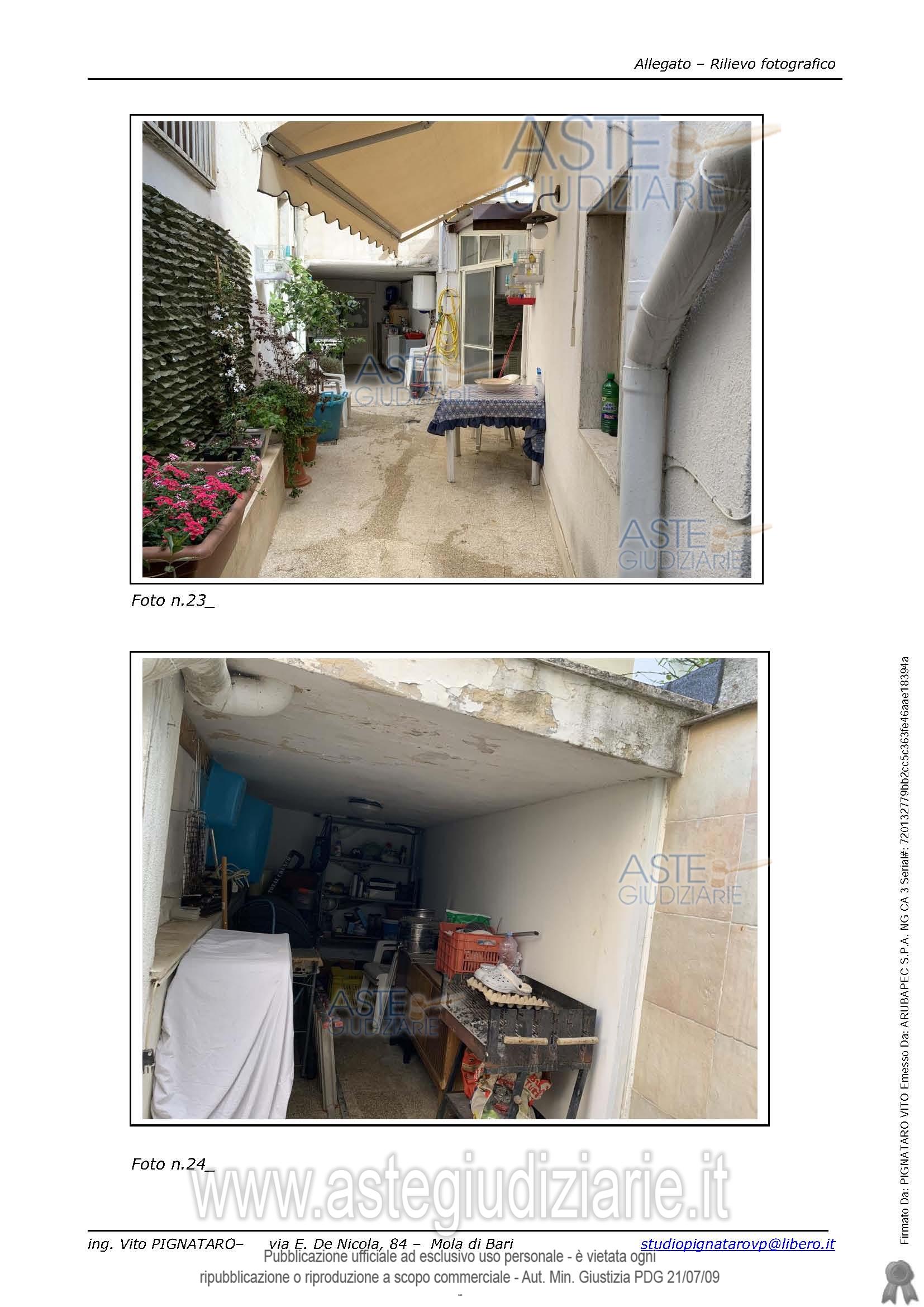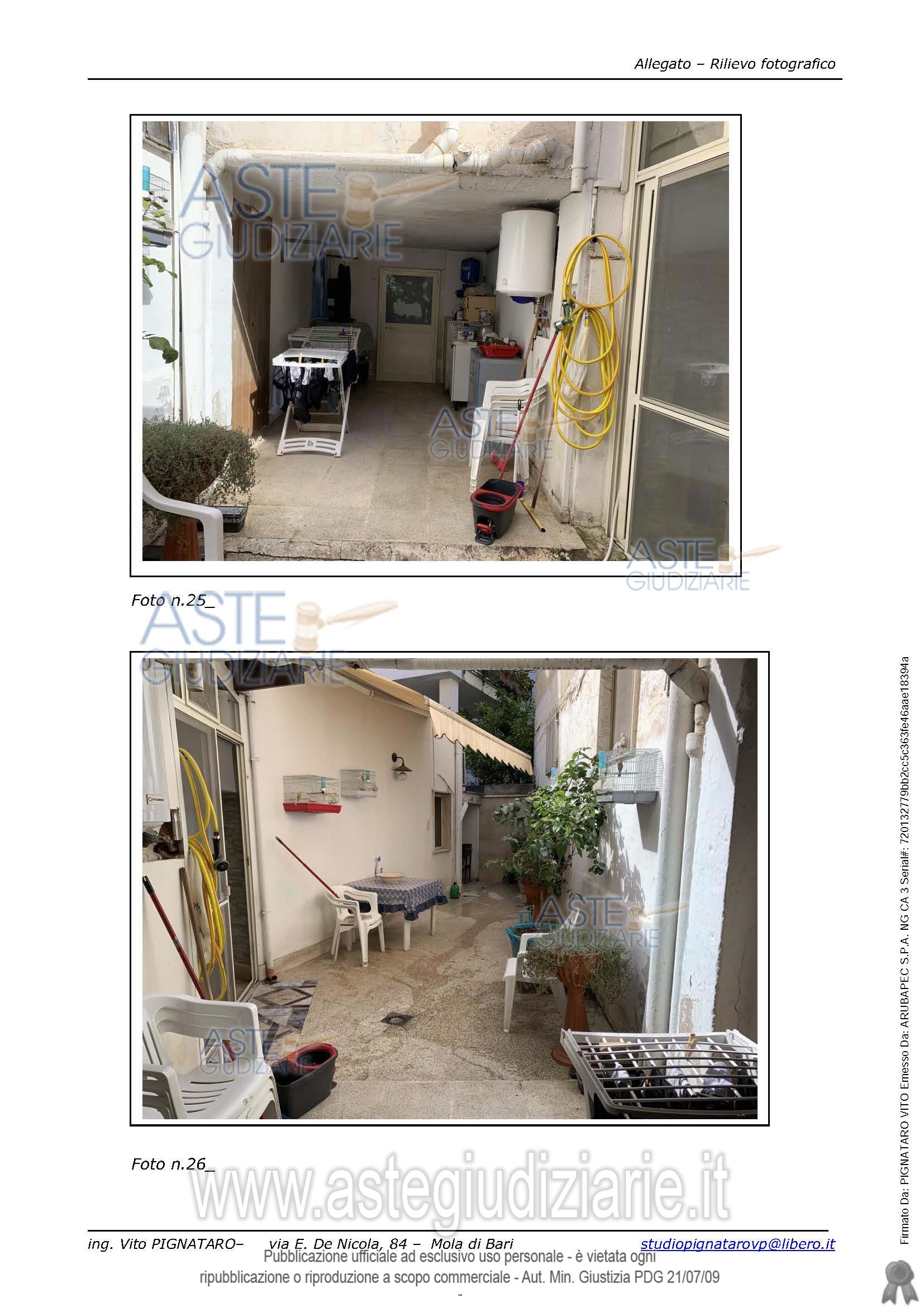 Vendita all'asta Senza incanto, con gara telematica asincrona - LOTTO UNICO: Appartamento composto da soggiorno ed una piccola stanza interclusa utilizzata come camera da letto e cucina/pranzo posizionati rispettivamente alla sinistra e frontalmente e alla destra dell’ingresso. Alla sinistra del vano cucina pranzo si trova il piccolo vano bagno. La cucina/pranzo è comunicante con un’area esterna coperta e rifinita internamente in cartongesso.Completa l’immobile al piano terra un’area scoperta con un piccolo ripostiglio coperto. Prezzo base € 75.000,00 (offerta minima € 56.250,00). Data inizio operazioni di vendita: 25/02/2026 ore 16:30. Giudice Dott. Antonio Ruffino. Professionista delegato alla vendita Dott. Simona Calabrese - Email "calabresesimona75@gmail.com". Custode Giudiziario Dott. Simona Calabrese - Email "calabresesimona75@gmail.com". Rif. Tribunale di Bari - Esecuzione immobiliare post legge 80 n. 21/2023