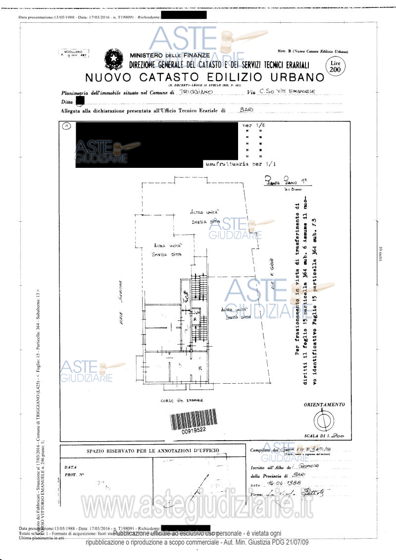 Vendita all'asta Senza incanto, con gara telematica asincrona - LOTTO 3: Piena proprietà di unità immobiliare al primo piano composta da due appartamenti fisicamente uniti in uno solo, oltre che di porzione del sovrastante lastrico solare e manufatti su esso insistenti. Prezzo base € 240.128,00 (offerta minima € 180.096,00). Data inizio operazioni di vendita: 13/07/2026 ore 16:00. Giudice Dott. Marisa Attollino. Professionista delegato alla vendita Dott. Roberto Fabbroni - Email "vendite@fabbroni.it". Custode Giudiziario Dott. Roberto Fabbroni - Email "vendite@fabbroni.it". Rif. Tribunale di Bari - Esecuzione immobiliare post legge 80 n. 841/1994