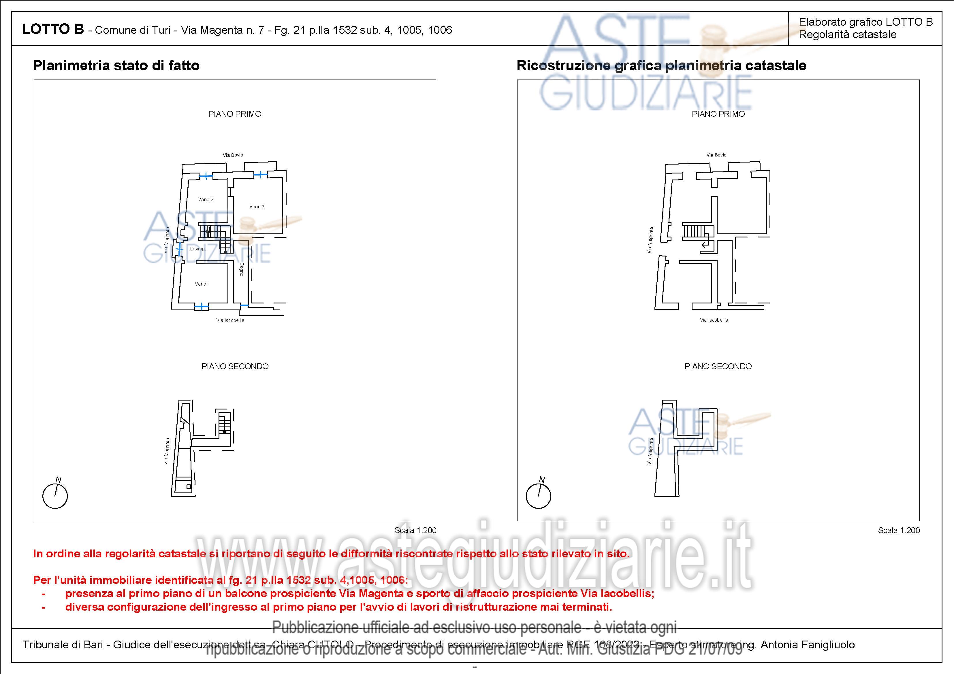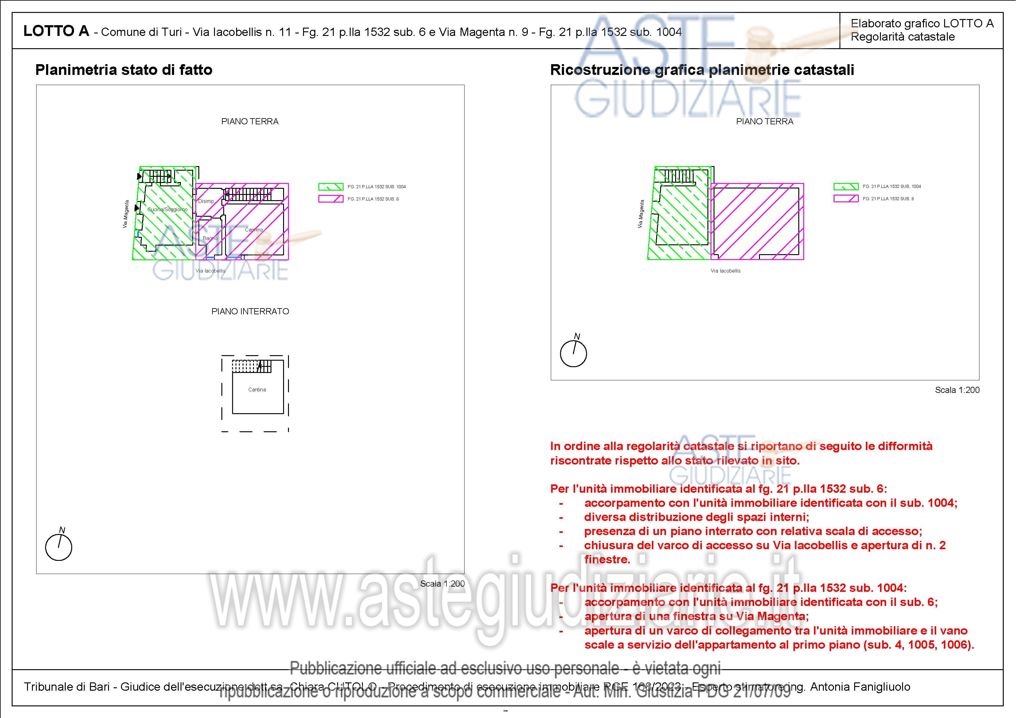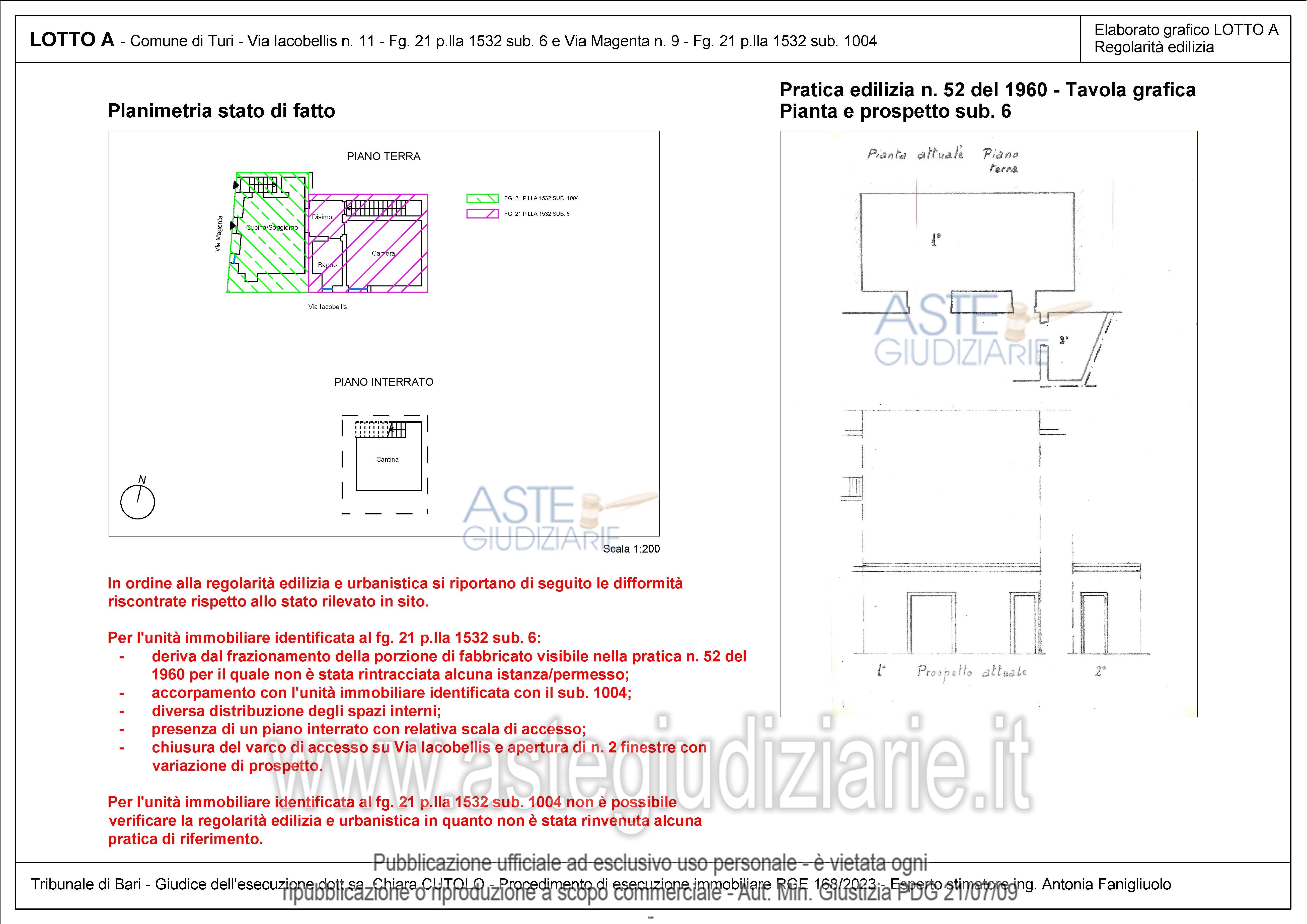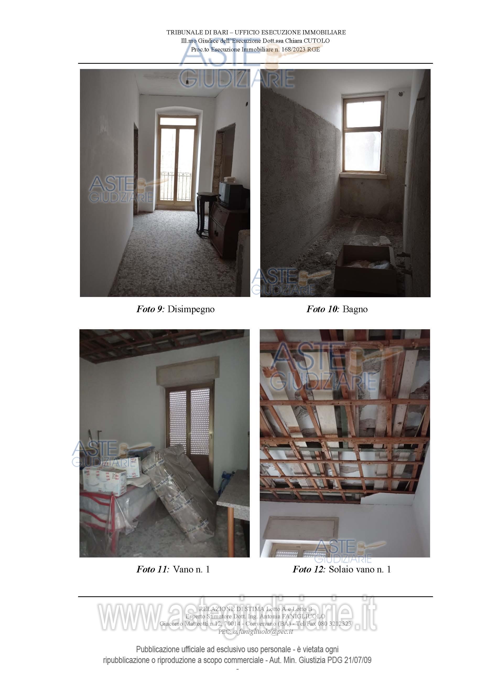 Vendita in attesa dell'emissione del nuovo bando d'asta. LOTTO UNICO: Casa per civile abitazione composta da due piccoli vani a piano terra aventi accesso uno dalla Via Magenta n. 9 e l’altro da Via Iacobellis civico 11, con piano cantinato sottostante, da tre vani e accessori a primo piano con relativa scala di accesso e da terrazzo e ripostiglio al secondo piano. Ultimo prezzo base € 25.631,25 (offerta minima € 19.223,44). Giudice Dott. Chiara Cutolo. Professionista delegato alla vendita Avv. Alessandro Luigi De Felice - Email "studio.defelice@libero.it". Custode Giudiziario Avv. Alessandro Luigi De Felice - Email "studio.defelice@libero.it"; Cell. 3936691729. Rif. Tribunale di Bari - Espropriazione immobiliare (cartabia) n. 168/2023